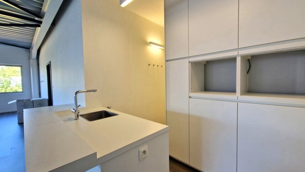 De ruimte is polyvalent en open van opzet, waardoor ze geschikt is voor uiteenlopende professionele invullingen — van administratief kantoor tot creatieve werkplek.