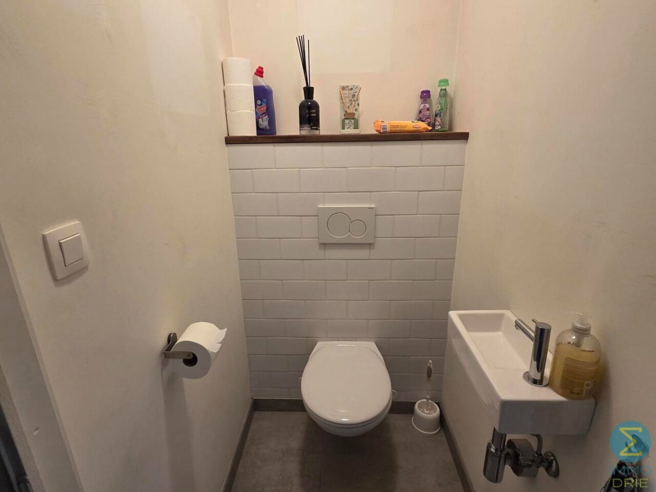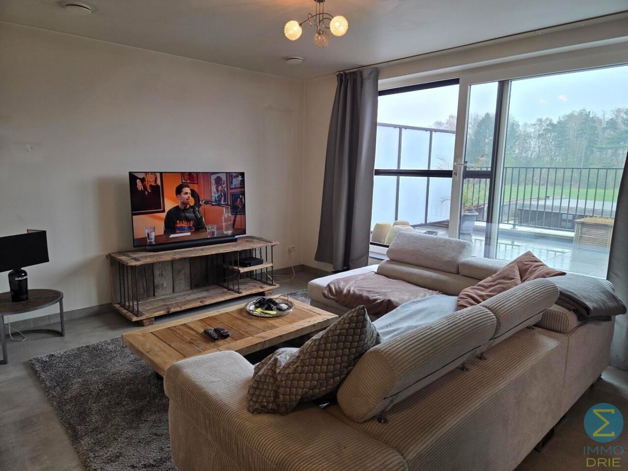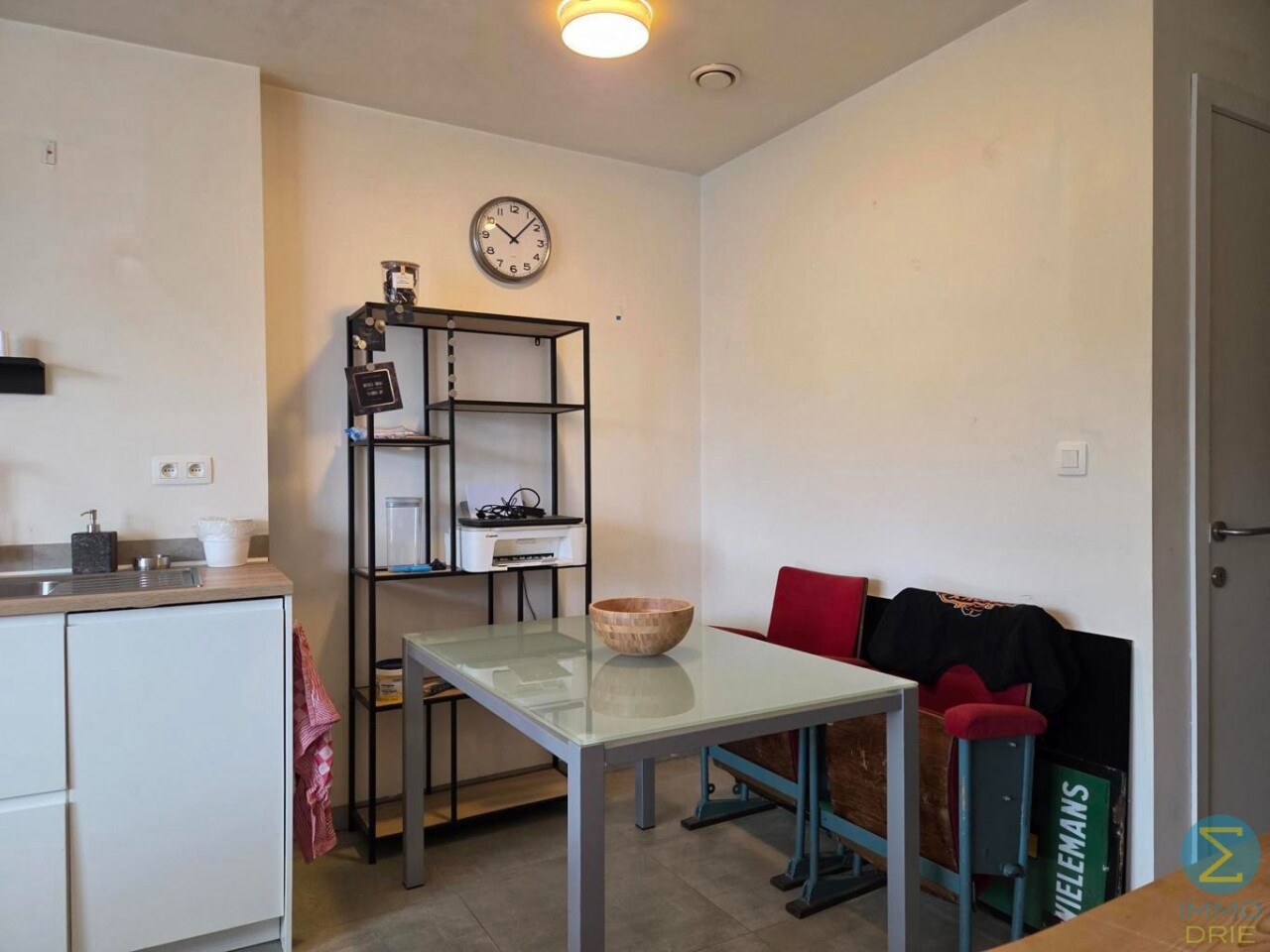 Via de inkomhal komt u in de lichtrijke woonkamer met open keuken. De keuken is volledig uitgerust met een modern keukenblok en beschikt over alle nodige toestellen, waaronder een vaatwasser, koelkast met vriesvak, inductiekookplaat en combi-oven.