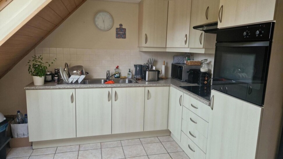Indeling: Woonkamer met tegelvloer, half open - ingerichte keuken met een elektrisch vuur / afzuigkap / koelkast en een oven. 1 slaapkamer en een badkamer met ligbad, badkamermeubel en een toilet. Aparte berging met de aanwezigheid van de Cv-brander.