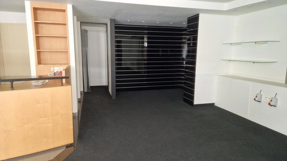 Mooi centraal gelegen handelsruimte van ca. 130 met grote achterliggende magazijnruimte en keukentje.