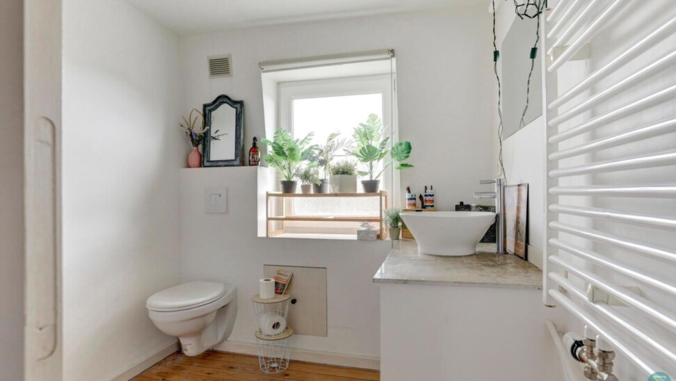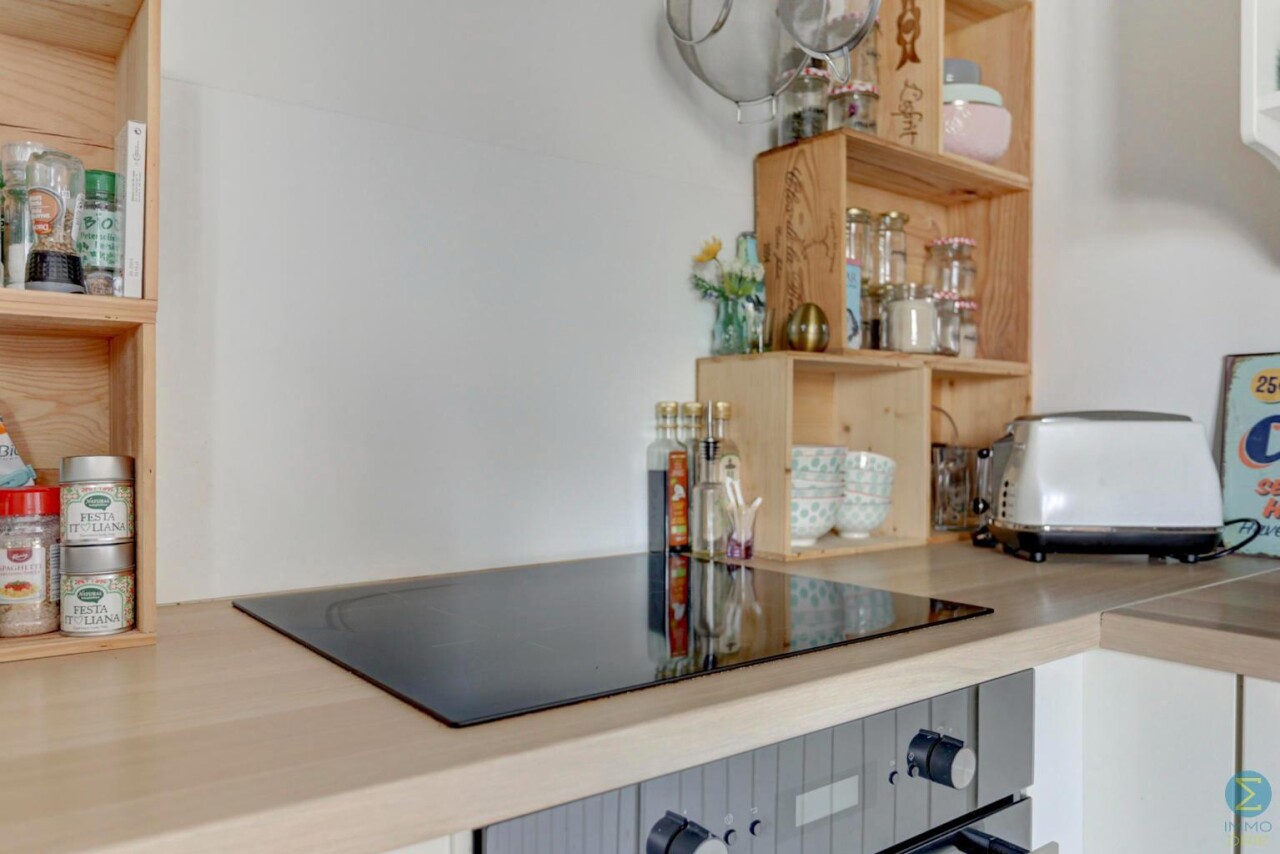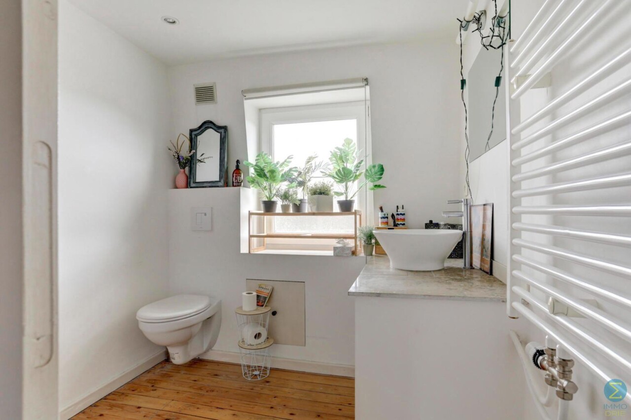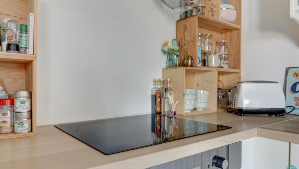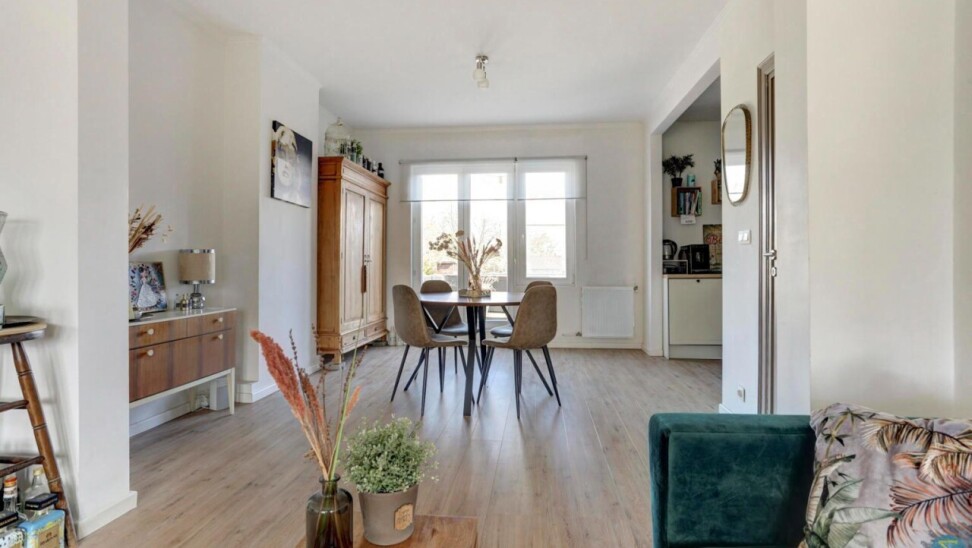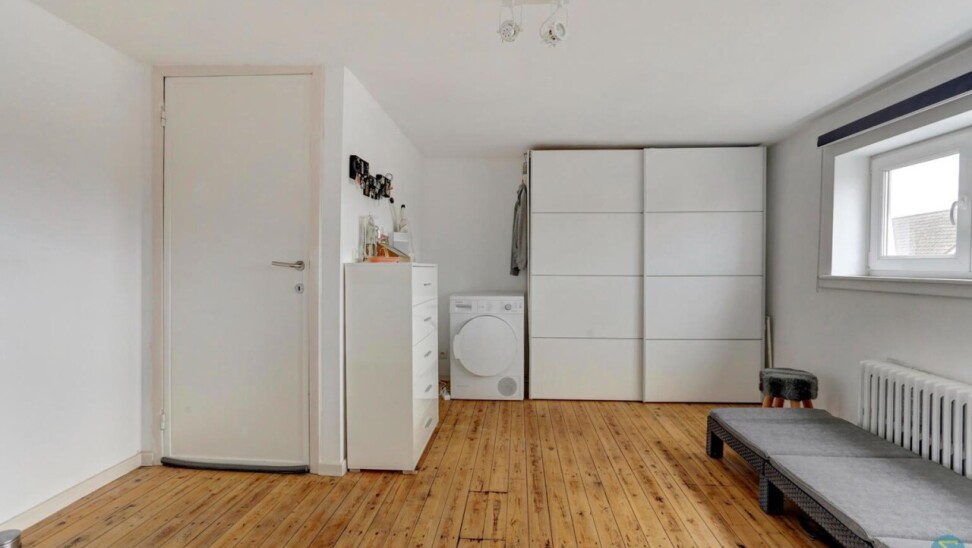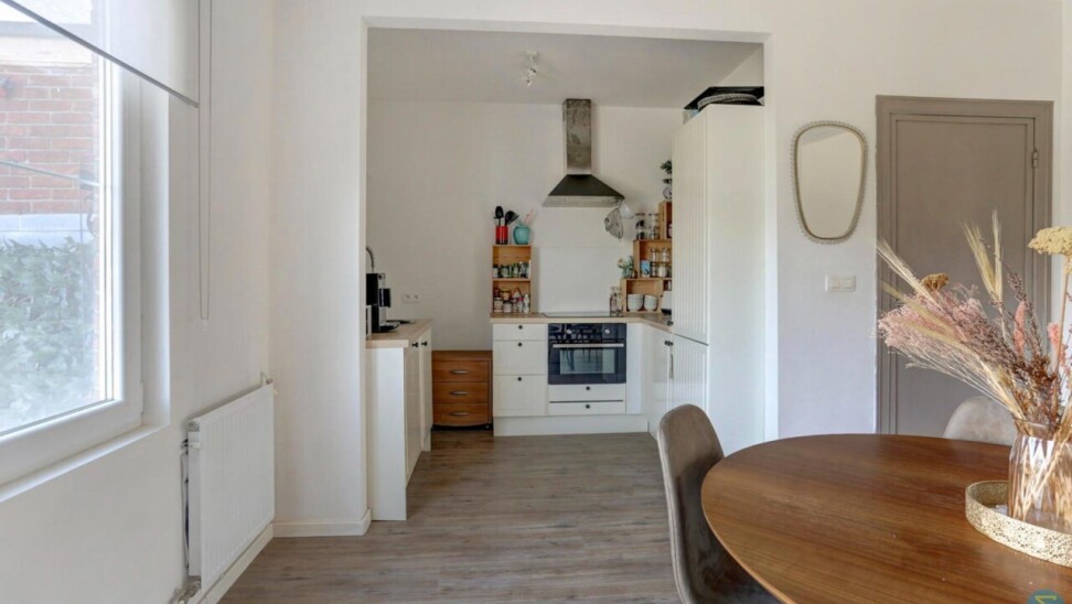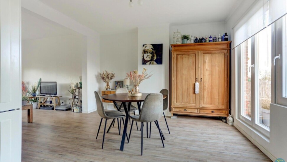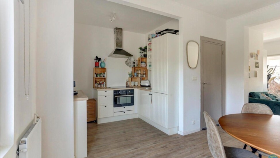 Hier kom je terecht in een sfeervolle woonkamer met veel licht en een open keuken die volledig is uitgerust met alle hedendaagse toestellen: koelkast, vriezer, vaatwasser, keramische kookplaat, oven en dampkap. Aansluitend vind je een praktische bergruimte met CV-installatie en aansluiting voor wasmachine.