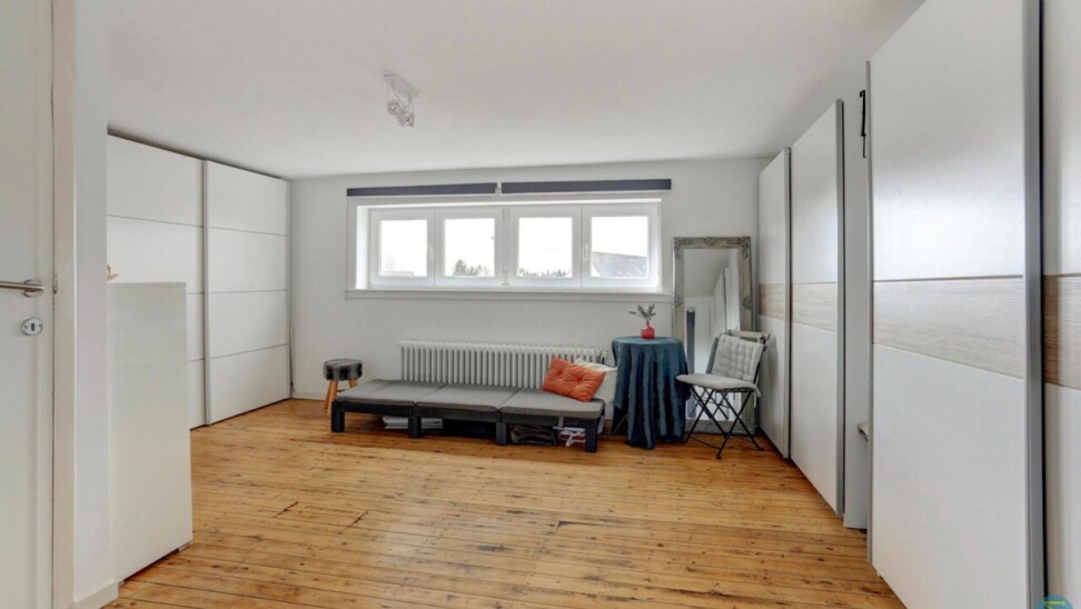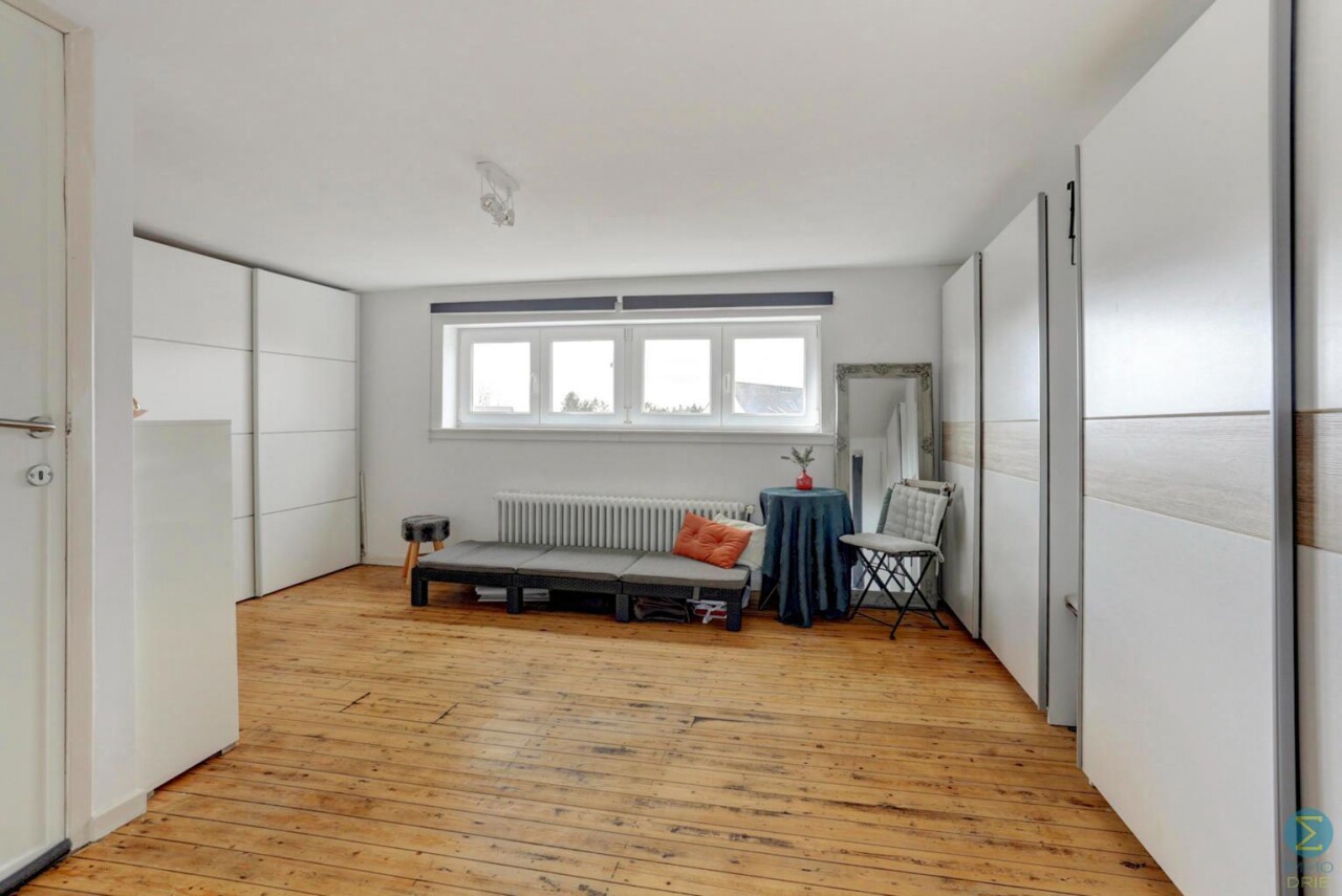 Op het gelijkvloers is er onder de open trap bovendien plaats voorzien voor het stallen van een fiets en het plaatsen van een vuilbak.