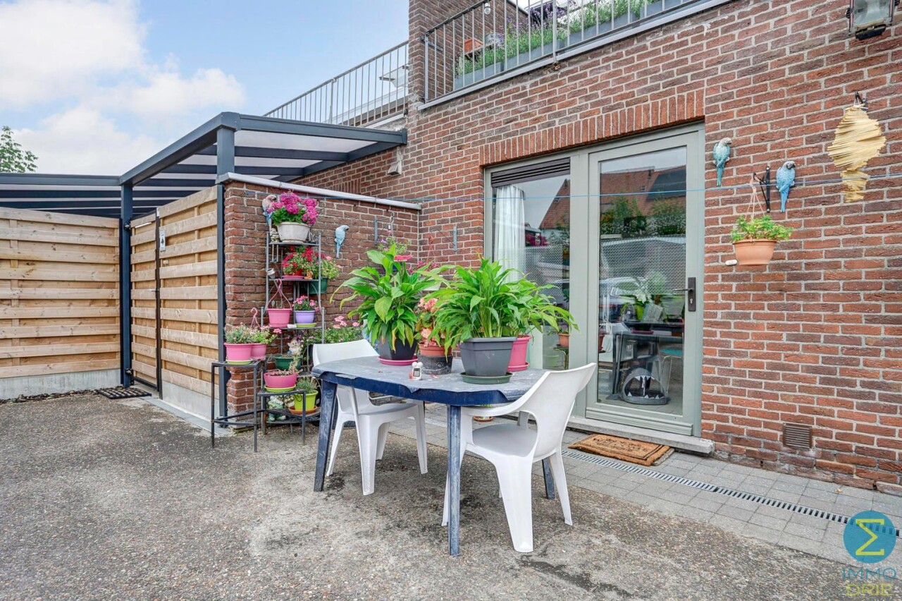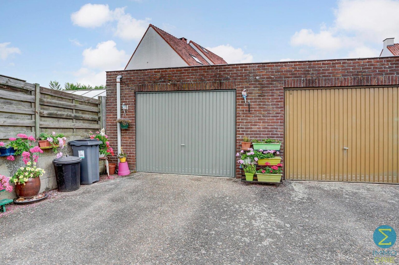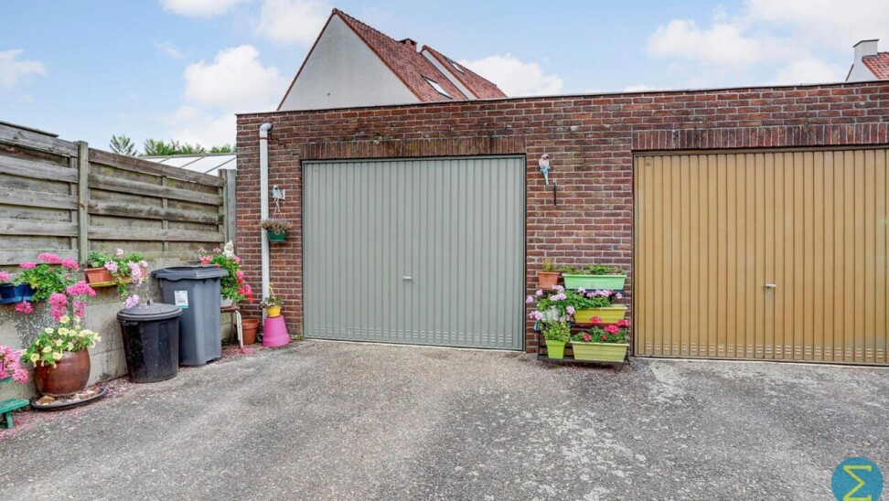 Vanuit de achterste slaapkamer geeft een deur toegang tot de buitenruimte, alwaar zich ook de ruime garage bevindt.