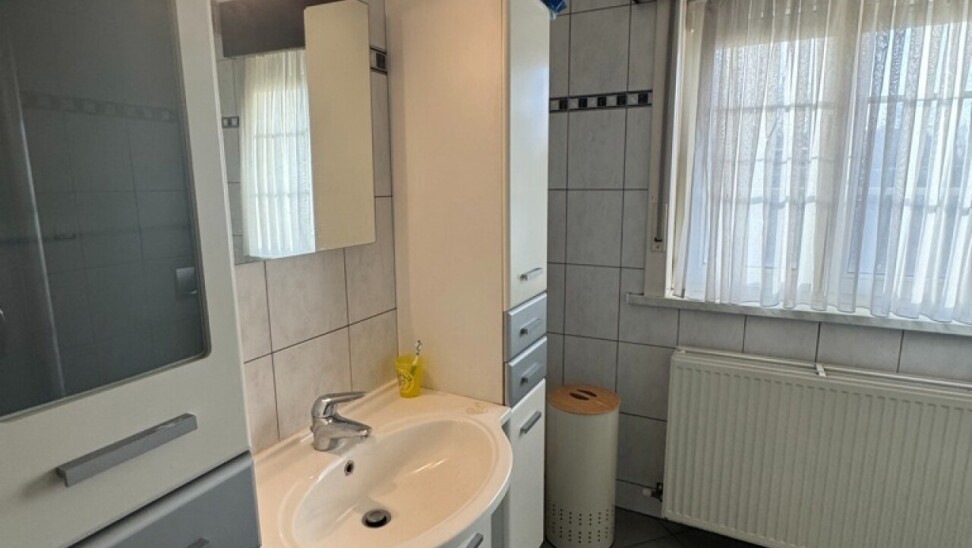 Indeling: inkomhal, zeer ruime woonkamer, keuken voorzien van afwasmachine, nis voor uw microgolf/oven, kookvuur, dampkap en koelkast, koele berging naast de keuken, 2 slaapkamers, achterinkom waarin voorziening voor uw wasmachine en badkamer met toilet, douchecabine en lavabomeubel. Achteraan het gebouw heb je nog een carport voor uw auto.