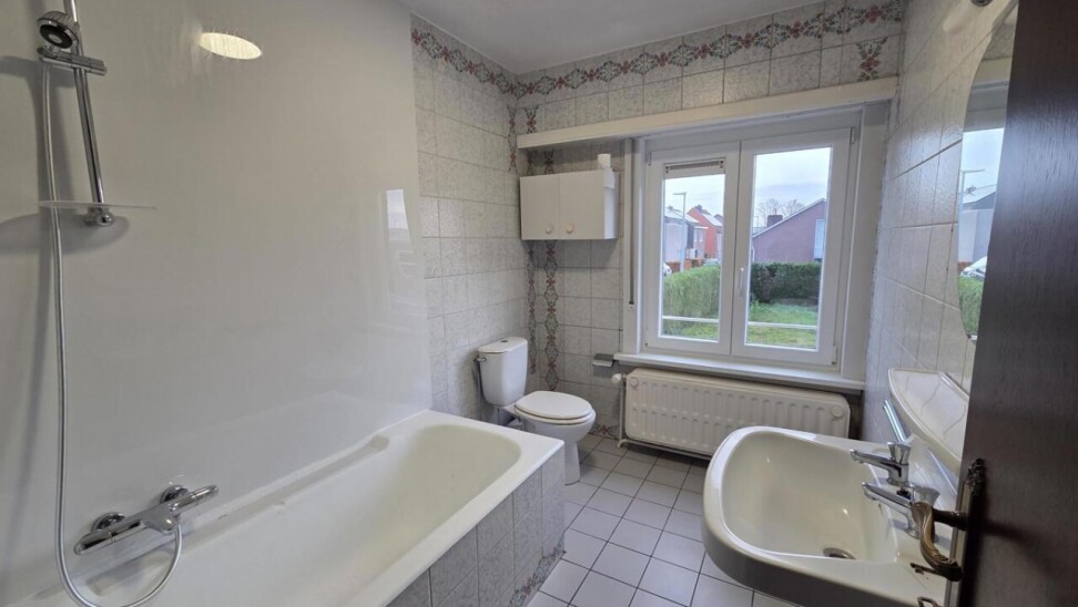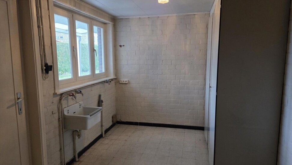 Naast de woonkamer ligt de ingerichte leefkeuken, die voldoende plaats biedt voor een eettafel en zo het hart van het dagelijkse gezinsleven vormt. De keuken sluit aan op een praktische wasplaats, uitgerust met de CV-brander en voorzien van ruimte voor wasmachine en droogkast. Via de achterinkom heb je directe toegang tot de tuin, wat een meerwaarde is voor wie graag buiten leeft of kinderen heeft die graag spelen. Op het gelijkvloers is er bovendien een apart toilet voorzien en een inpandige garage die zowel geschikt is voor een wagen als voor extra opslag of hobbyruimte. Als bijkomend voordeel beschikt de woning over een kelder die ideaal is voor voorraad of seizoensgebonden spullen.