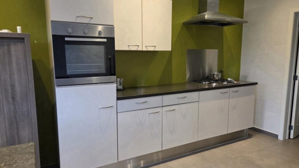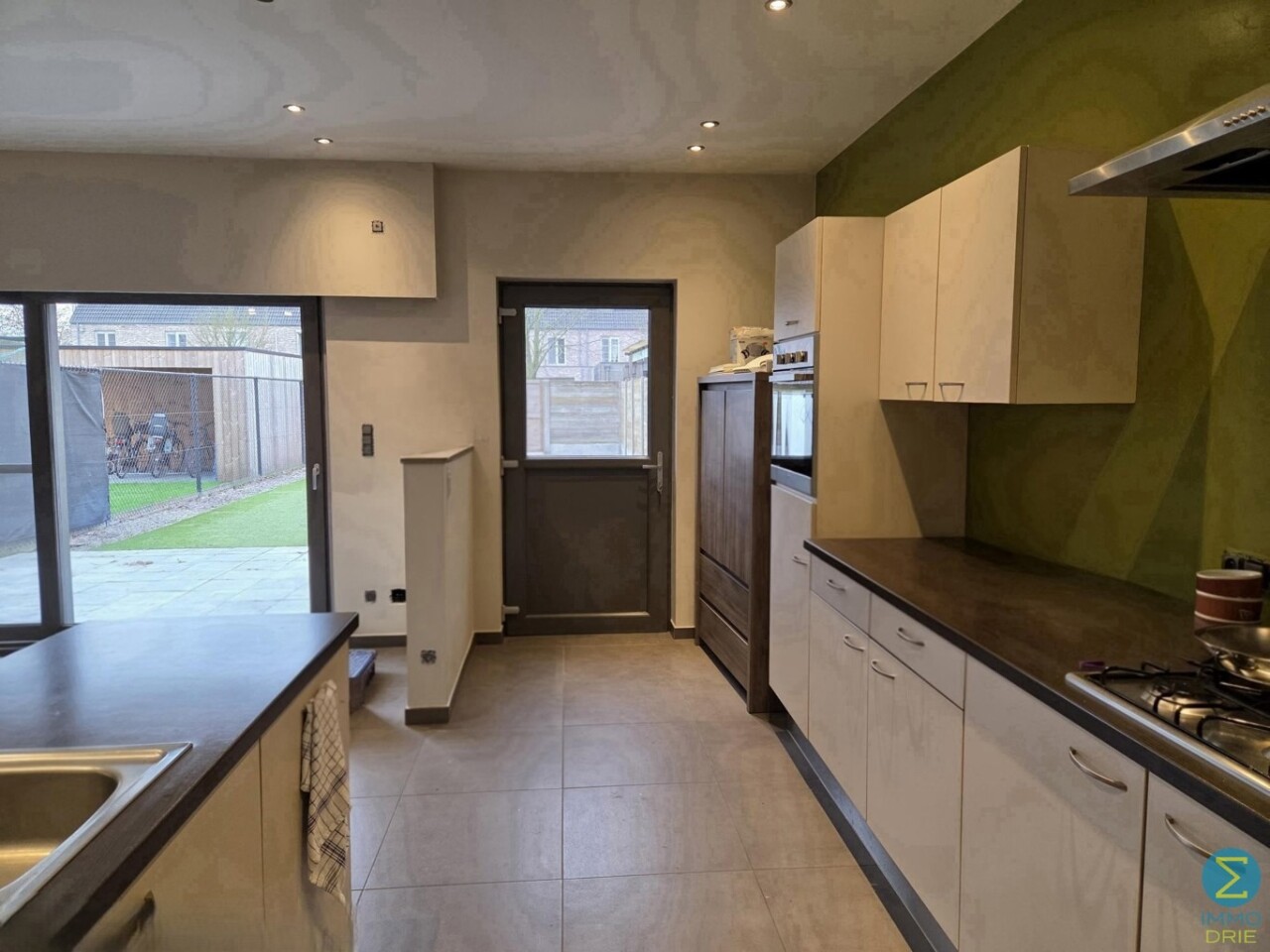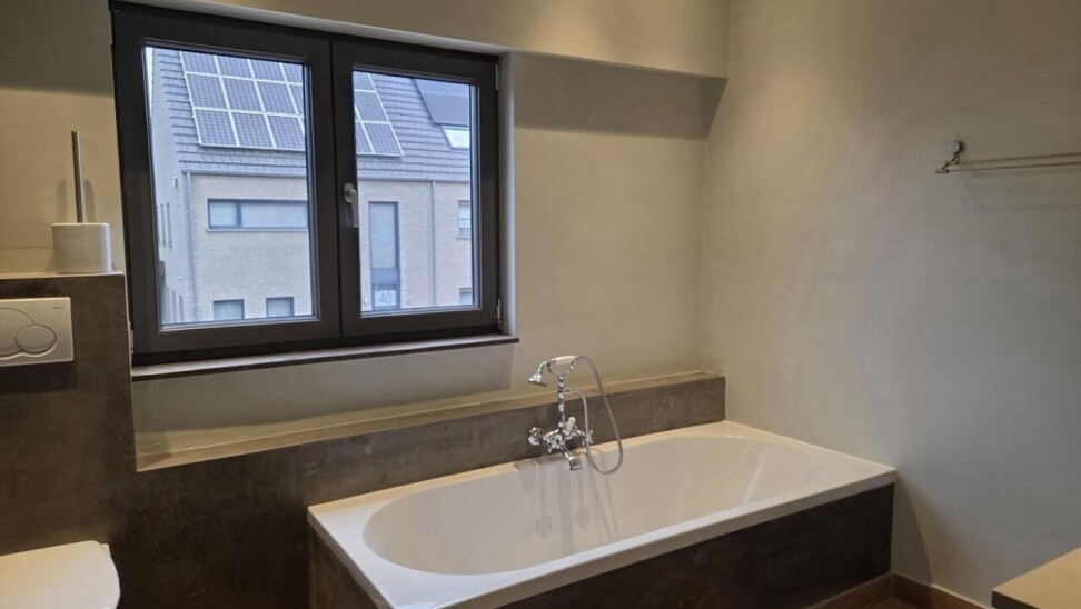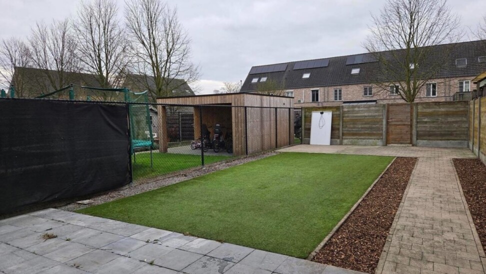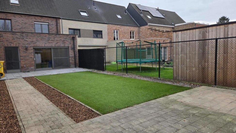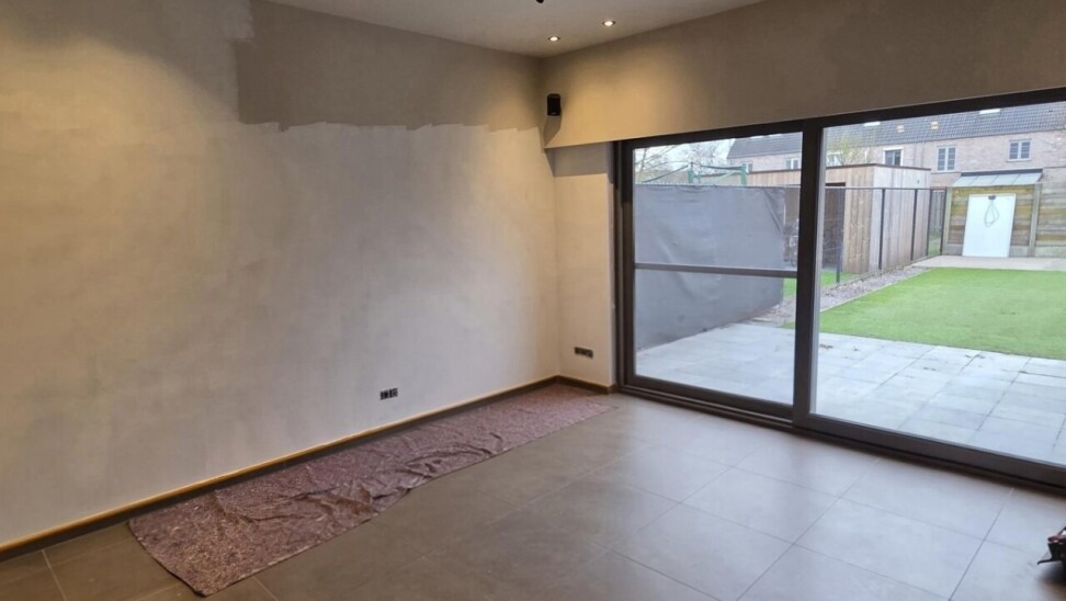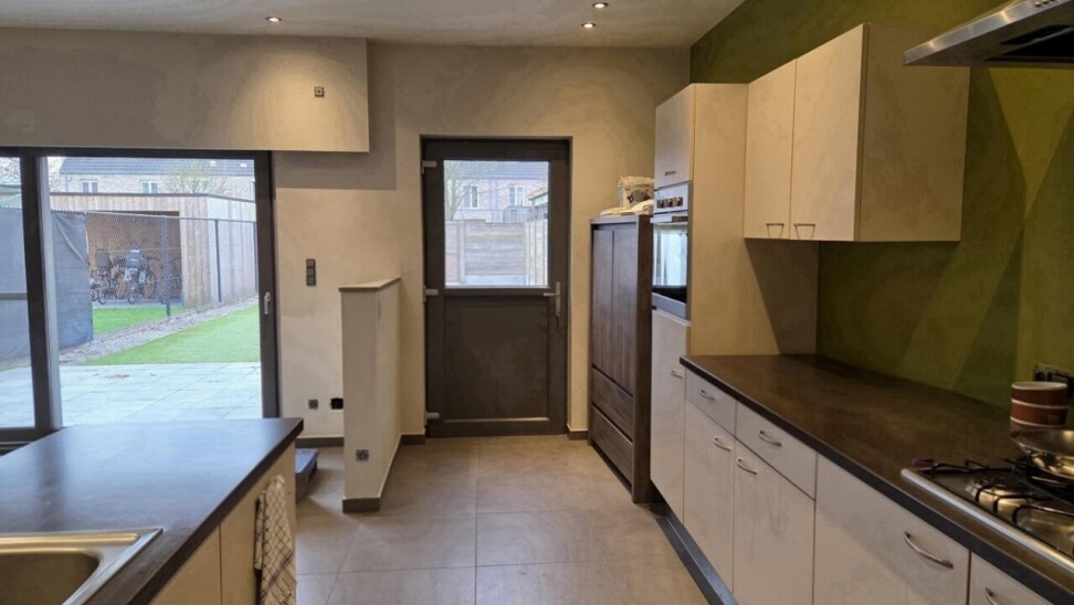De leefruimtebeschikt over voldoende natuurlijke lichtinval door de grote raampartijen en biedt een mooi zicht op de onderhoudsvriendelijke, zuidwest gerichte tuin. Dankzij het tuinpoortje achteraan is de tuin ook langs buiten toegankelijk, wat extra praktisch is voor bijvoorbeeld fietsen of vuilbakken.