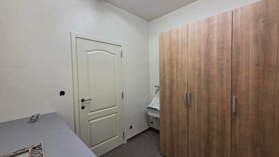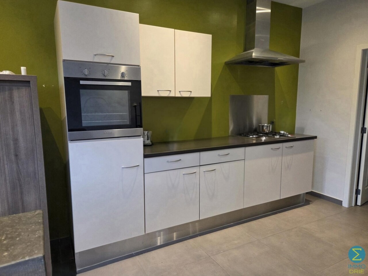 Tussen de garage en de keuken bevindt zich een praktische, ruime wasplaats, voorzien van een wastafel en aansluitingen voor wasmachine en droogkast. De open keuken zelf is volledig uitgerust met een gasvuur, oven, vaatwasser, inbouwkoelkast en voldoende opbergruimte, perfect voor het gezinsleven of voor wie graag kookt.