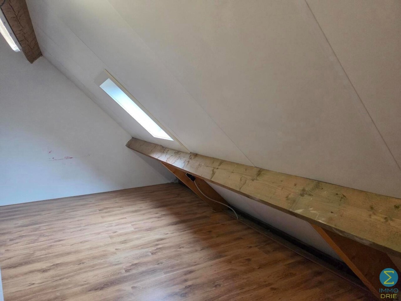 De zolderverdieping is niet volledig afgewerkt, maar biedt een mooie opportuniteit: de ruimte is groot genoeg om om te vormen tot hobbykamer of polyvalente ruimte, afhankelijk van wat je maar nodig hebt.