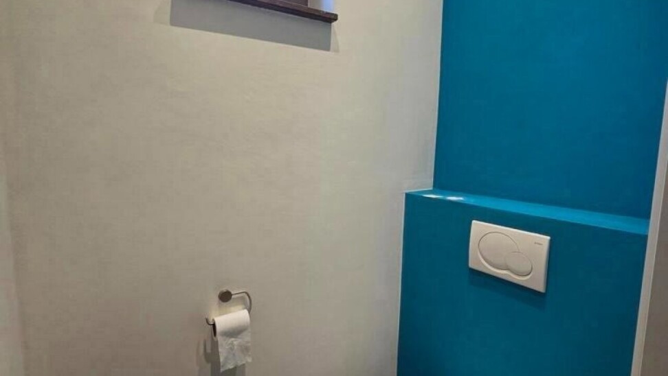 Links bevindt zich een gastentoilet en er is meer dan voldoende plaats voor een grote vestiairekast, ideaal voor jassen, schoenen en alle dagelijkse spullen alsook is er een beperkte bergruimte aanwezig voor eventueel poetsgerief e.d. Vanuit de inkomhal heb je directe toegang tot de open leefruimte of tot de inpandige garage, die is uitgerust met een landelijke dubbele houten deur die manueel te bedienen is.