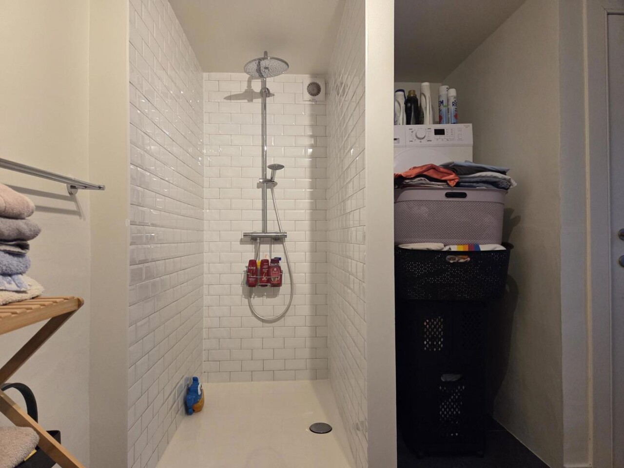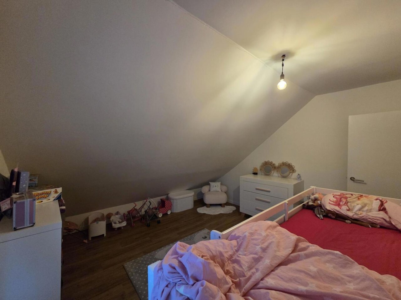 De spullen die niet dagdagelijks worden gebruikt, vinden hun plaats op de ruime opslagzolder die bereikbaar is via een vlizotrap.