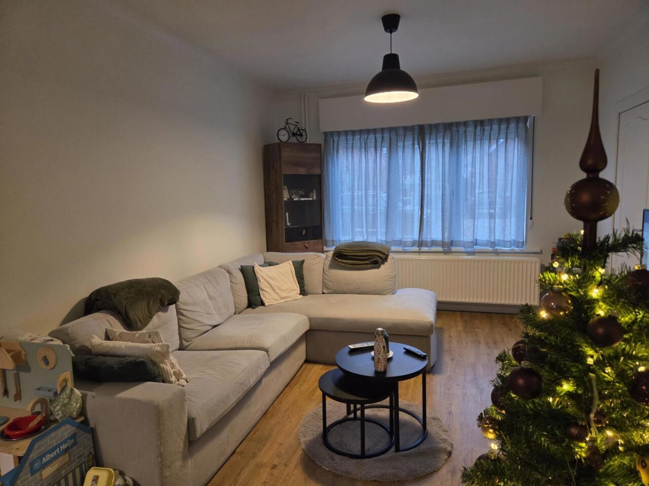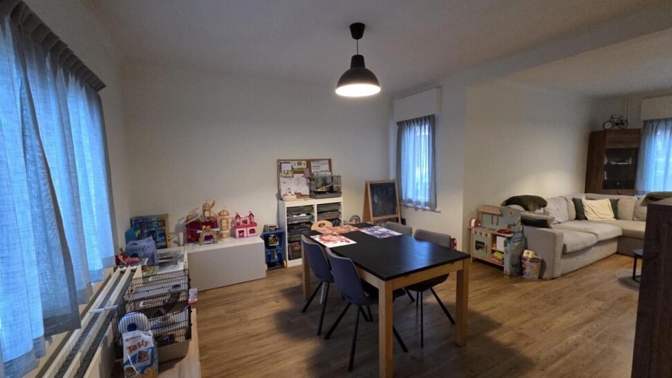 De prachtige woning betreedt u via de inkomhal die de aansluiting tussen het leefgedeelte enerzijds (gelijkvloerse verdieping) en het slaapgedeelte (eerste verdieping) verzorgt. Een open en zeer lichtrijke leefruimte die de mogelijkheid geeft tot diverse indelingsmogelijkheden. Een volledig nieuw geïnstalleerde keuken voorzien van werkelijk alle comfort is aanwezig in de woning waarin u zorgeloos voor gezin en vrienden kan koken. Een tussenruimte die zich kan lenen tot bureau of achterinkom (opbergruimte voor jassen en schoenen,...) scheidt de keuken en badkamer. Een badkamer die hier ook aan comfort niet onderdoet door zijn oppervlakte, inloopdouche, badkamermeubel met enkele wastafel en apart toilet. In deze ruimte kan u tevens de plaatsing van de wasmachine voorzien.