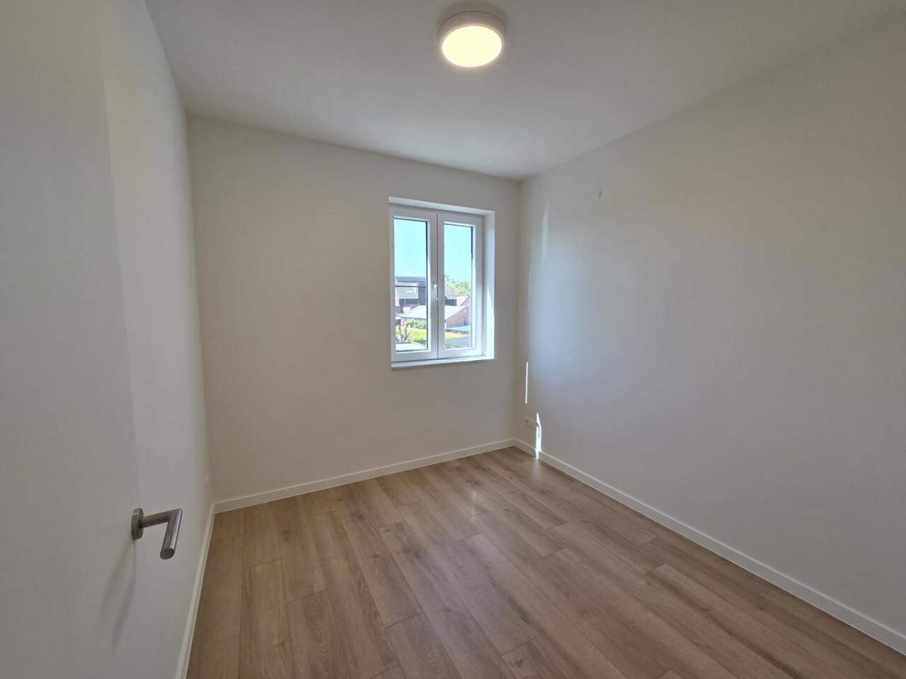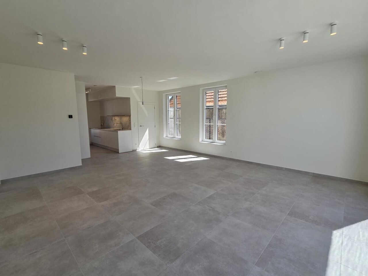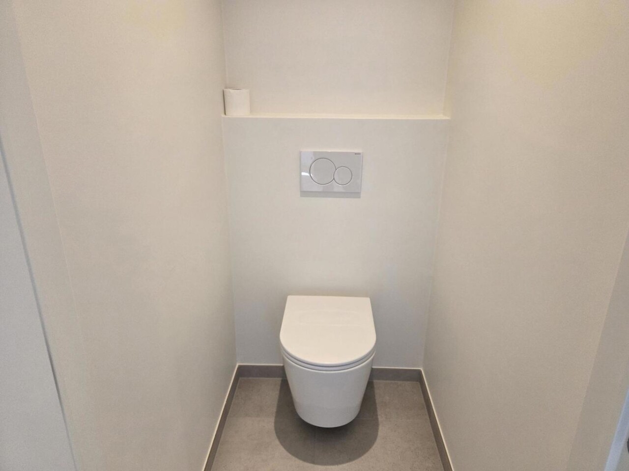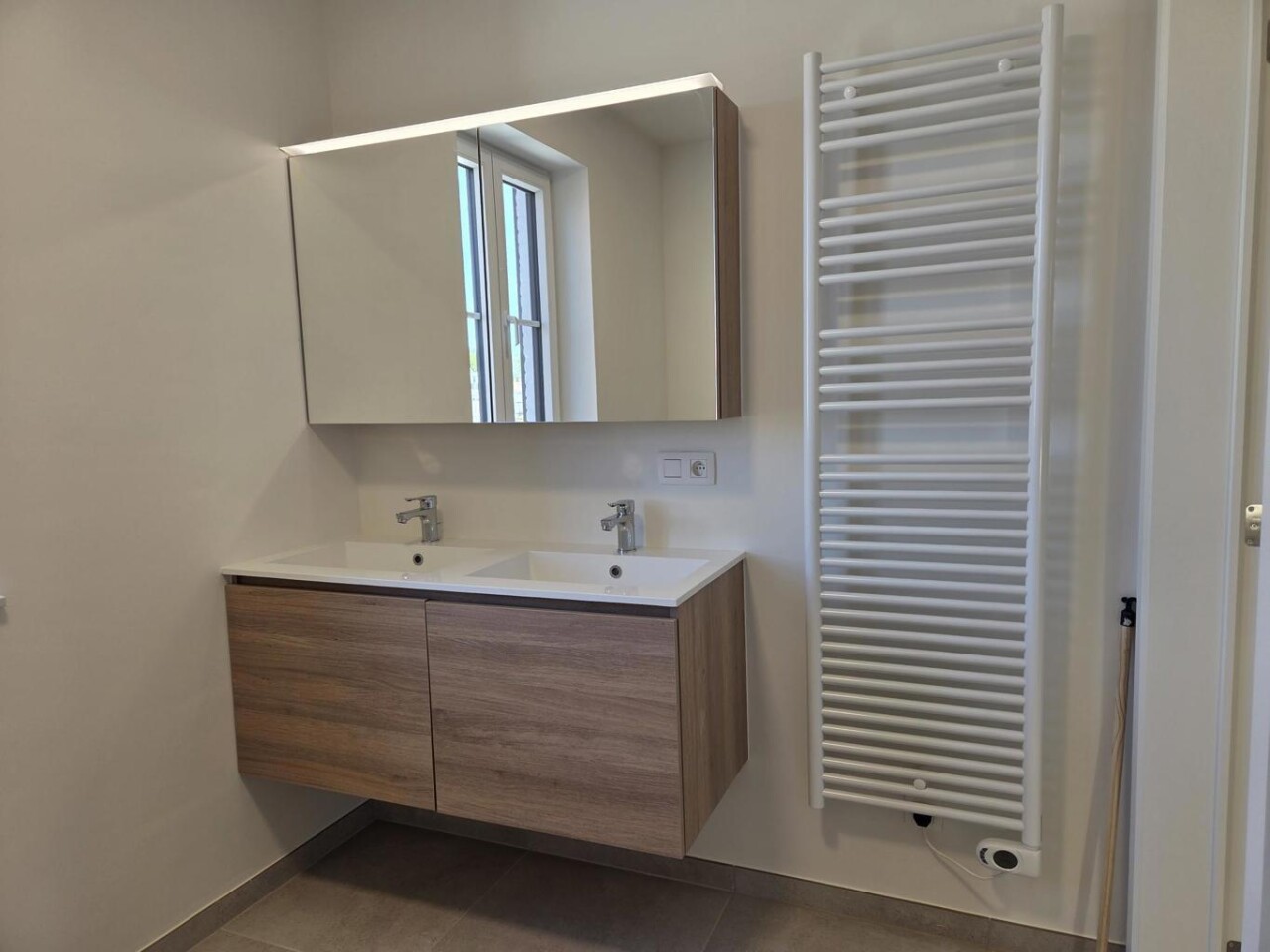 Aansluitend op de leefruimte bevindt zich de volledig uitgeruste open keuken, voorzien van alle hedendaags comfort zoals een inductiekookplaat, vaatwasser, combi-oven en voldoende opbergruimte. Naast de keuken vinden we een praktische berging, ideaal voor dagelijkse opslag, met aansluiting voor een wasmachine en waar ook de technische installaties van de woning zijn ondergebracht.