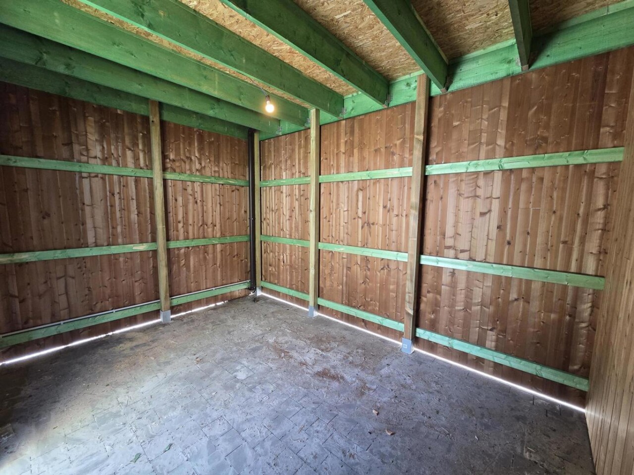 We betreden de woning via de inkomhal, waar meteen een gastentoilet voorzien is. Vanuit de hal komen we in de lichtrijke, open leefruimte. Dankzij de grote raampartijen geniet u hier van een aangename connectie met de tuin. De leefruimte biedt door haar open karakter tal van inrichtingsmogelijkheden en vormt het hart van de woning. Via de schuifpui heeft u directe toegang tot het terras en de westgerichte tuin, ideaal om in de namiddag en avond van de zon te genieten. De tuin is bovendien bereikbaar via een handig achterpoortje en beschikt over een ruim tuinhuis van ca. 12 m², voorzien van verlichting en elektriciteit.