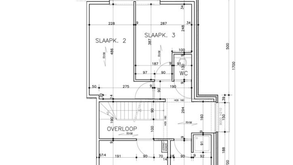 Eerste verdieping: 3 slaapkamers, badkamer met lavabo, douche en ligbad en een apart toilet.
