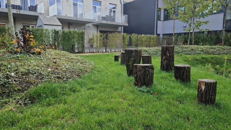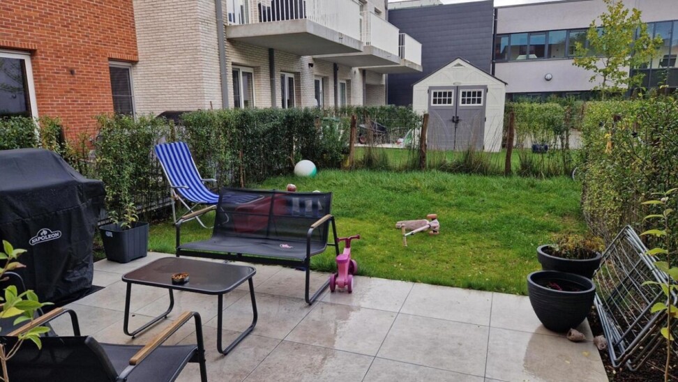 Aansluitend bevindt zich de zitruimte, met grote raampartijen die uitkijken op de westgerichte tuin. Dankzij deze oriëntatie geniet de woning van een warme avondzon. Via het schuifraam is er toegang tot het verharde terras, ideaal voor buitenmaaltijden of ontspanning.