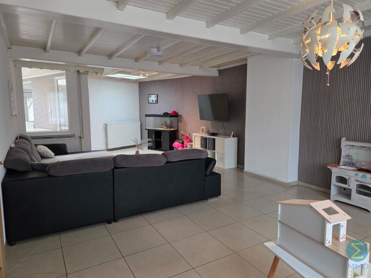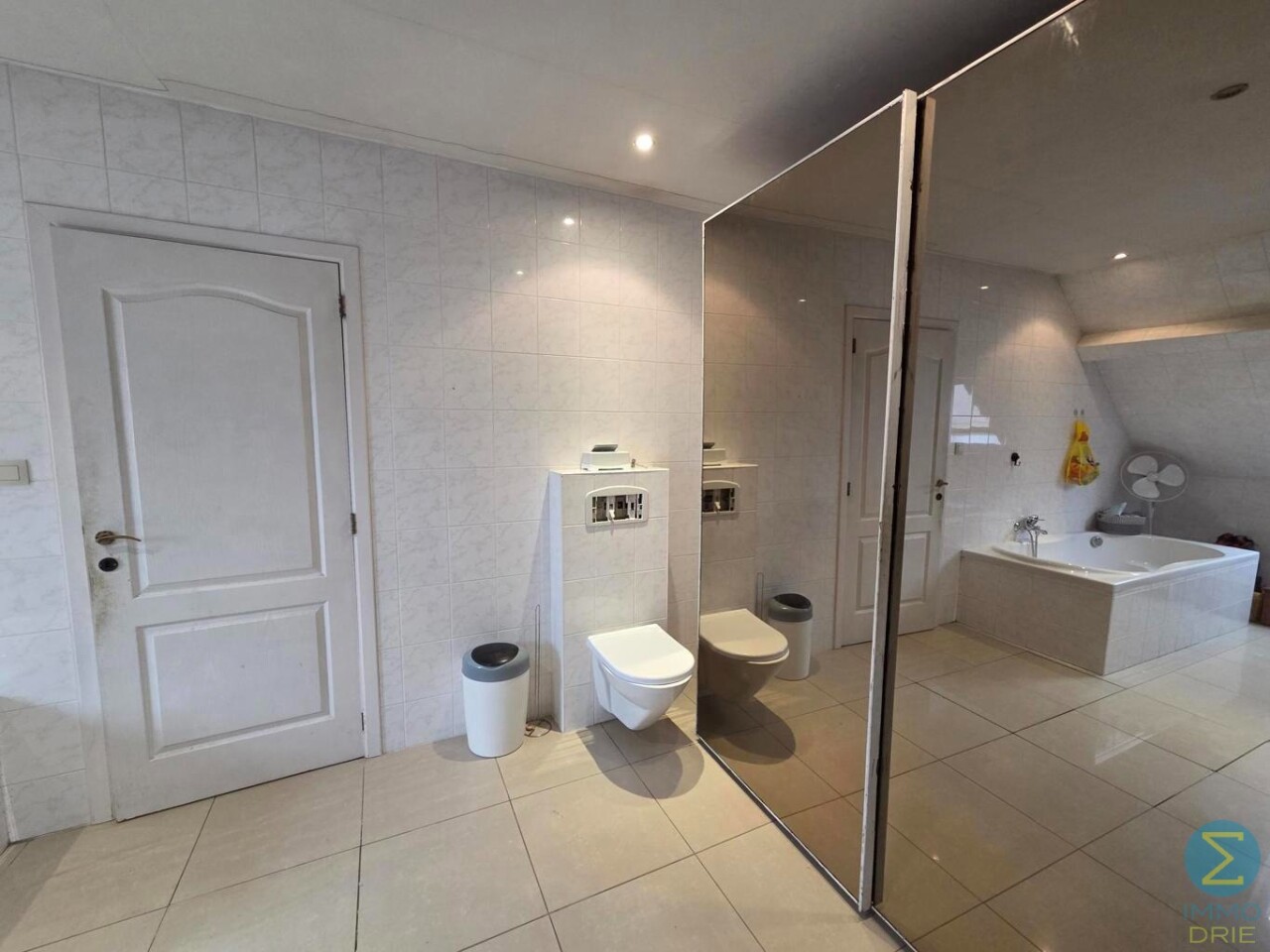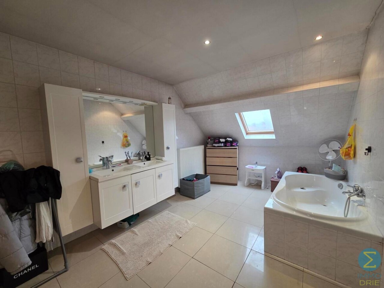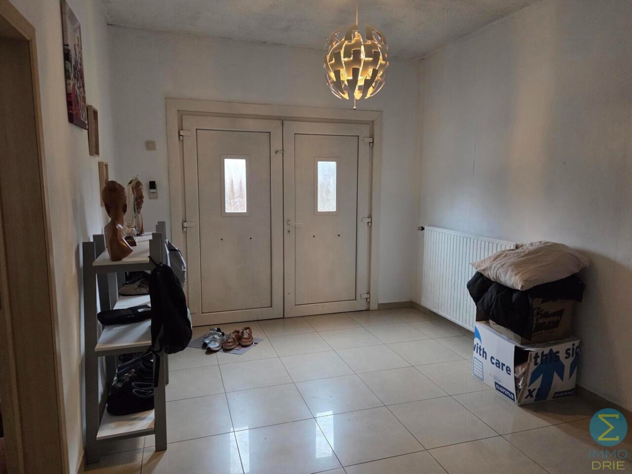 Bij het betreden van deze ruime halfopen bebouwing komt u terecht in een royale inkomhal die meteen een gevoel van openheid biedt. Hier vindt u een praktische badkamer met inloopdouche, een badkamermeubel met enkele wastafel en een gastentoilet.