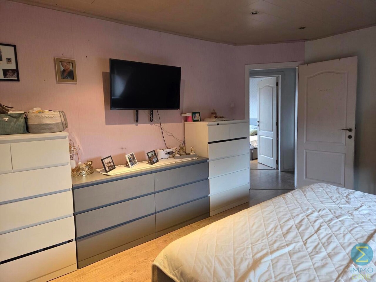 Op de eerste verdieping bevinden zich drie volwaardige slaapkamers. Daarnaast is er een badkamer uitgerust met een ligbad, een badkamermeubel met dubbele wastafel en een toilet. Badkamer is toegangkelijk via een ruimte die perfect als opslagruimte of bureau kan fungeren.
