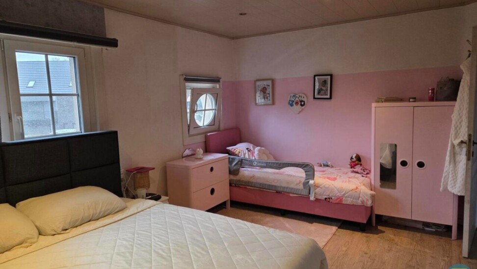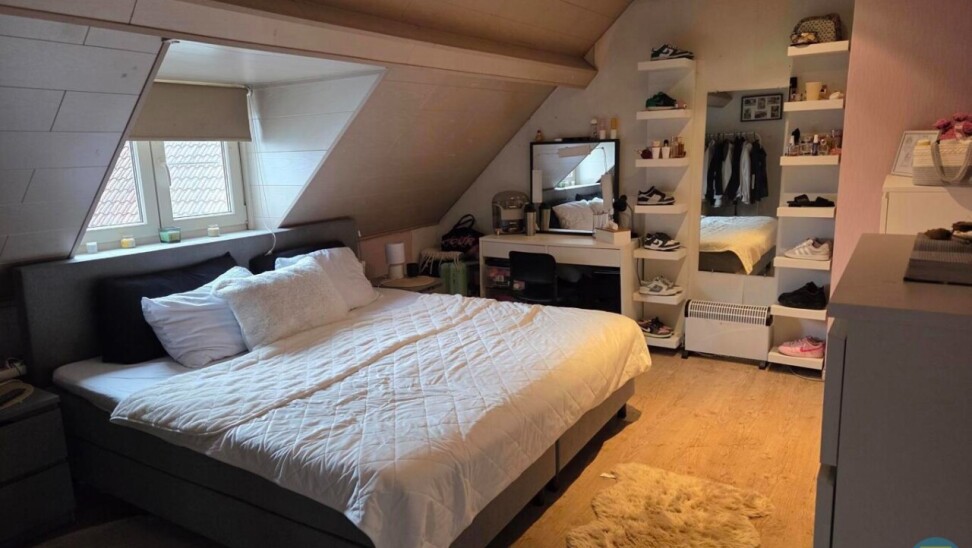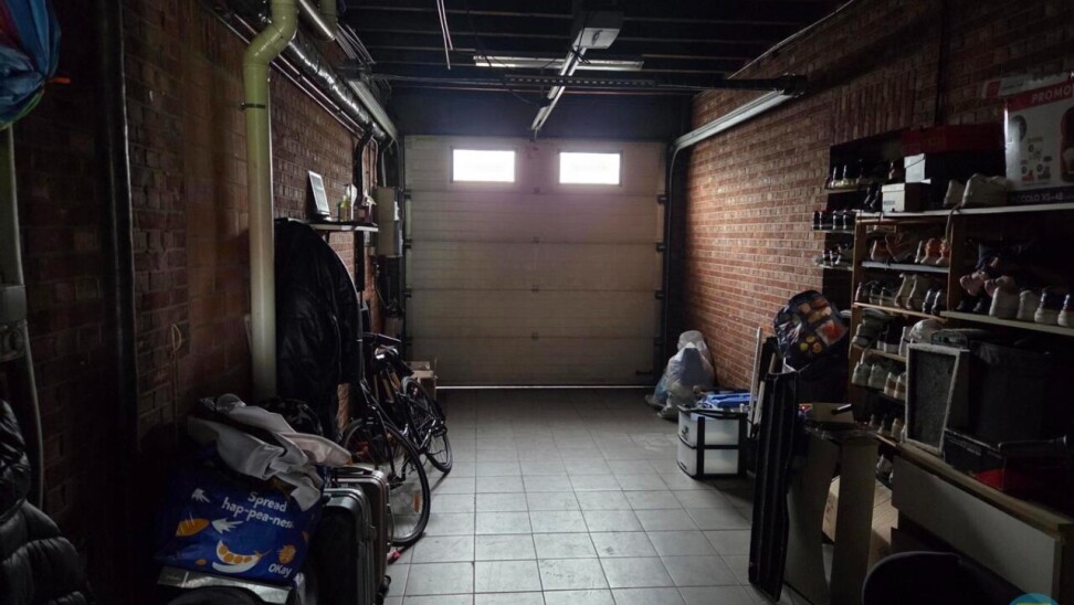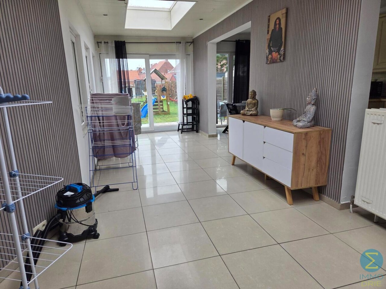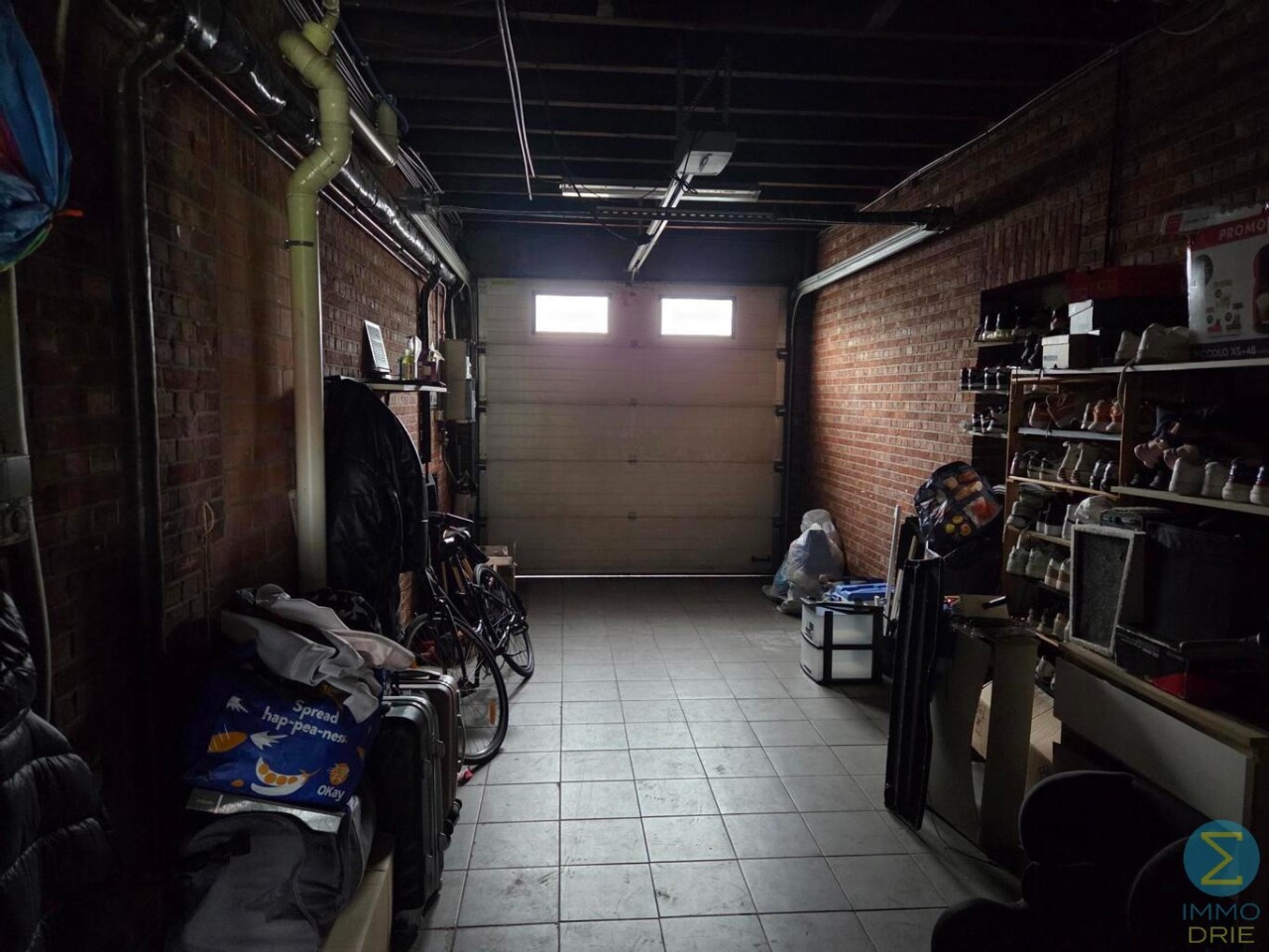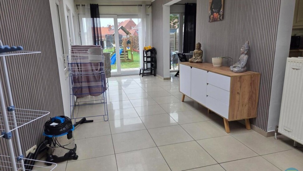 Aansluitend aan de eetruimte bevindt zich de wasplaats, voorzien van aansluitingen voor wasmachine en droogkast. Deze praktische ruimte geeft directe toegang tot de inpandige garage, die voldoende groot is voor een wagen en extra opslag zoals fietsen, vuilnisbakken of andere materialen.