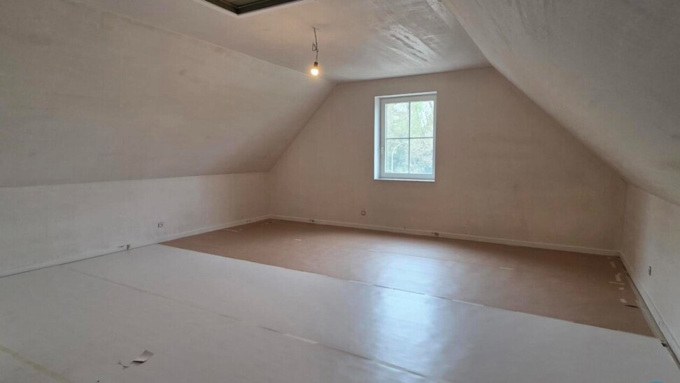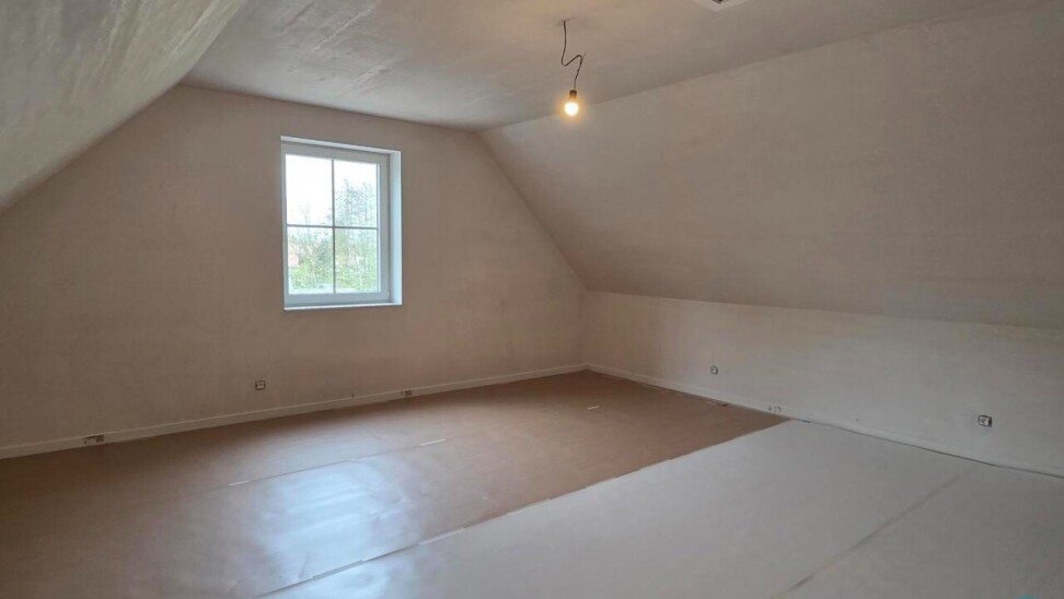 Via een vaste trap bereiken we de zolderverdieping, waar zich een ruime master bedroom bevindt, evenals een grote polyvalente ruimte die perfect kan dienen als speelkamer, fitnessruimte of hobbyruimte.