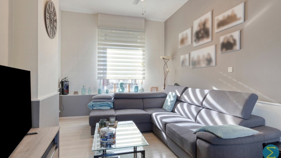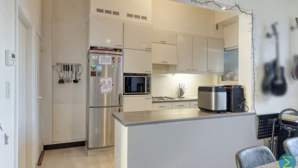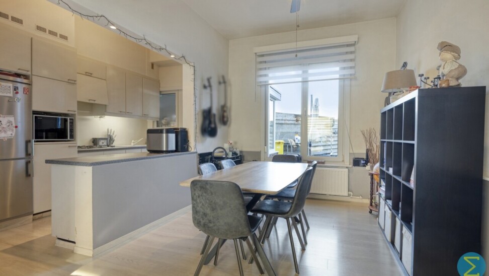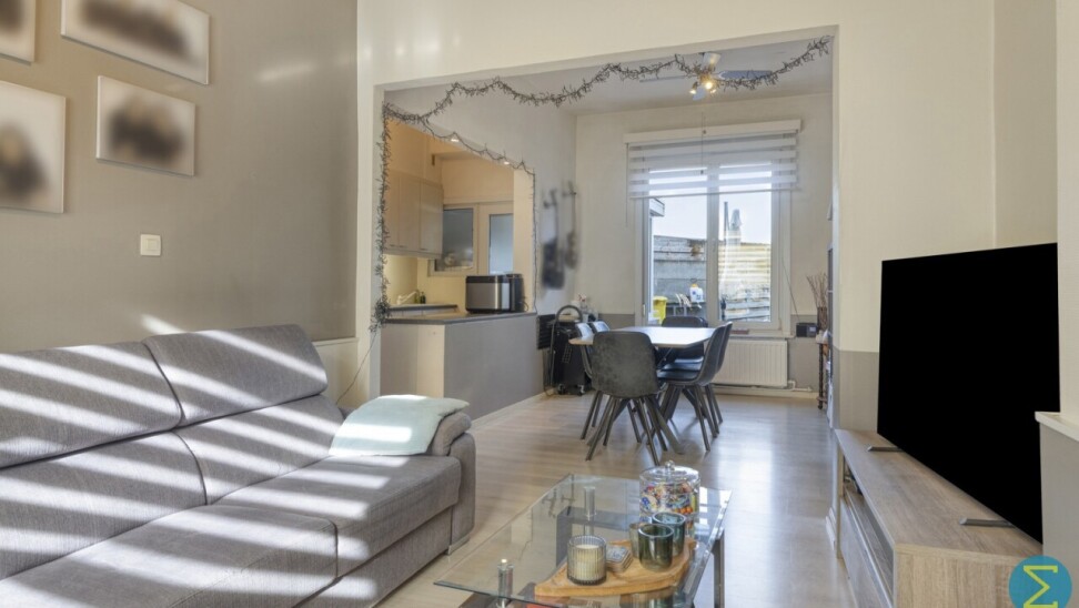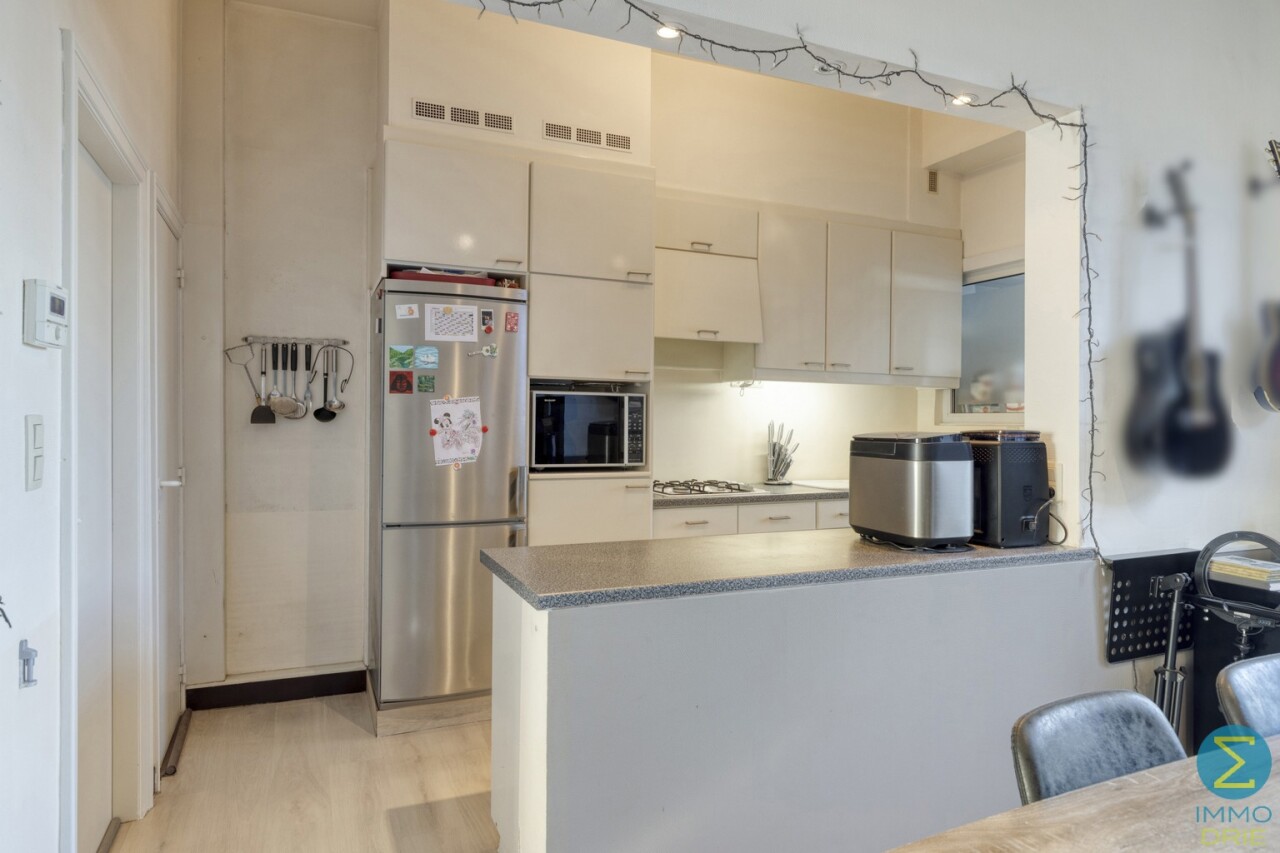 Vanuit de inkomhal komt men in woonkamer met open keuken en toegang tot de kelder. Achteraan treffen we nog een sas met apart toilet en ruimte voor de was- en droogmachine.