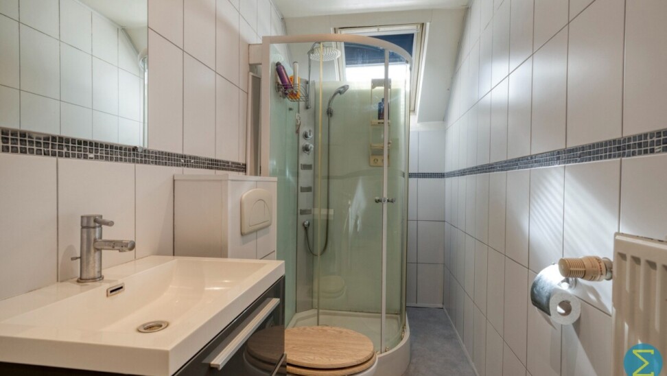 Op de verdieping bevinden zich twee ruime en één kleine slaapkamer en de badkamer met douchecabine, wastafelcombinatie en toilet.