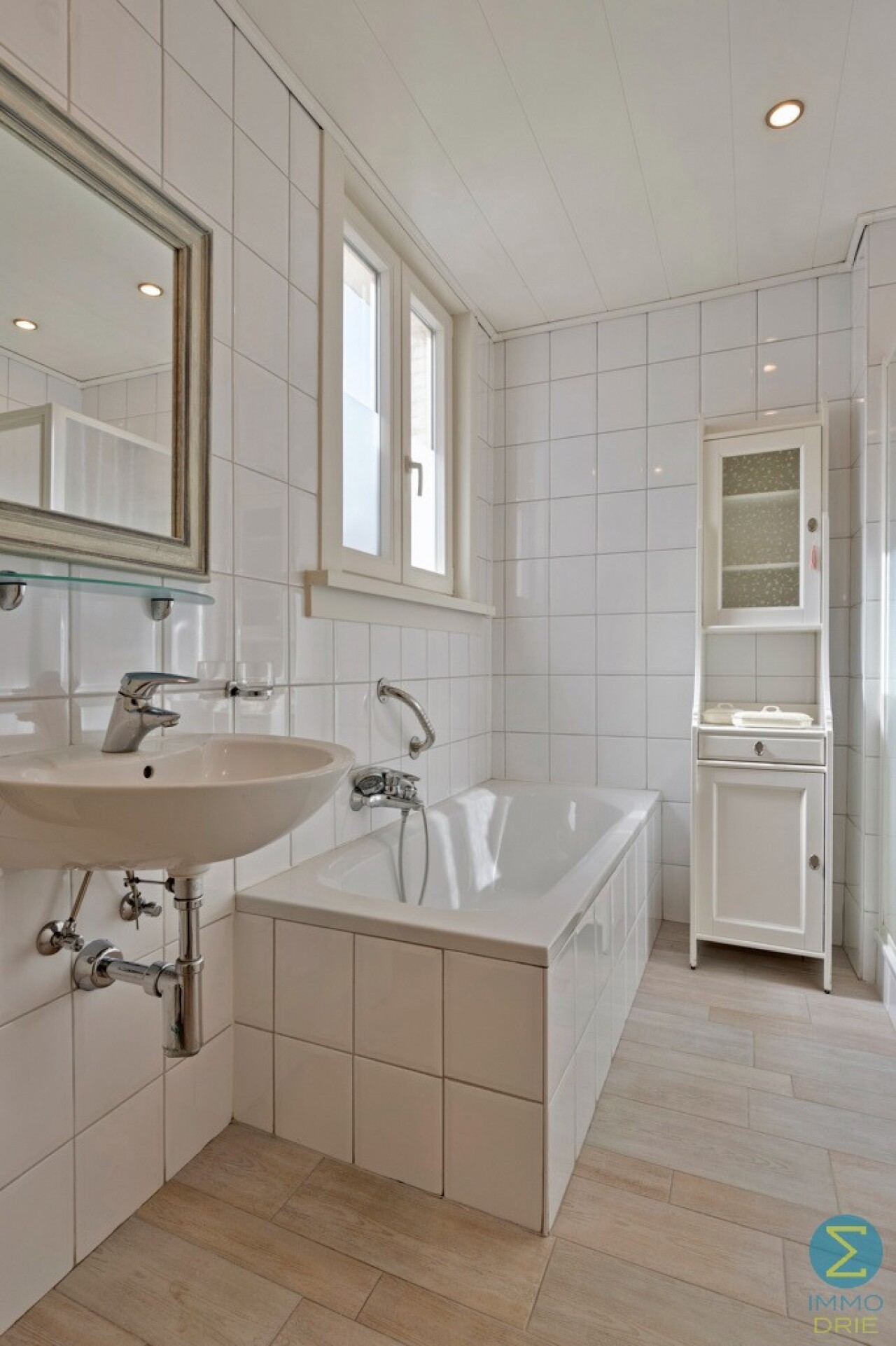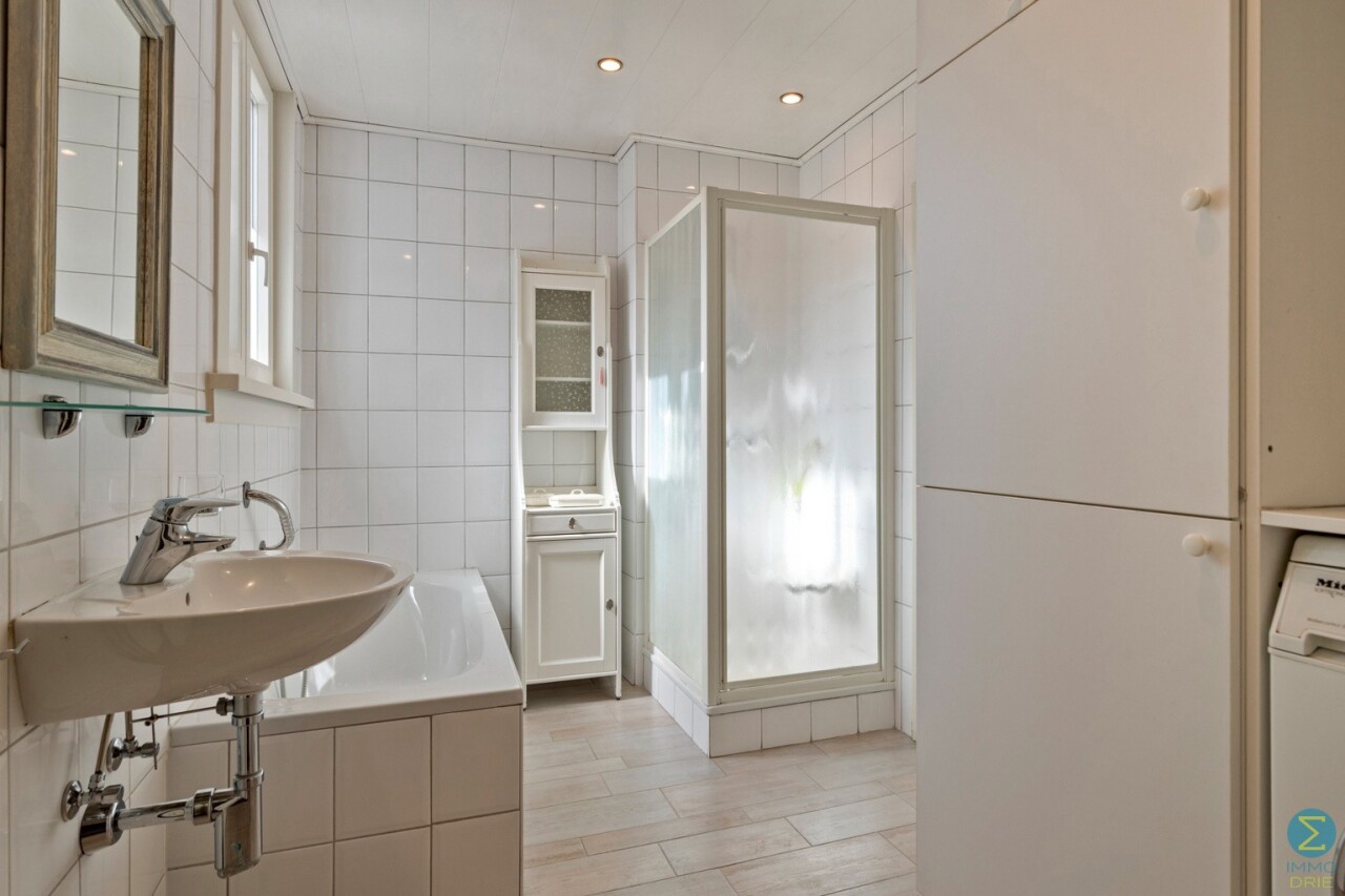 De woning beschikt over een inkom via het voormalige kapsalon, dat vandaag ingericht is als slaapkamer, maar perfect kan dienen als bureauruimte, praktijk of hobbykamer. Verder is er een praktische berging, een badkamer uitgerust met zowel douche als ligbad en aansluiting voor een wasmachine, evenals een apart toilet.