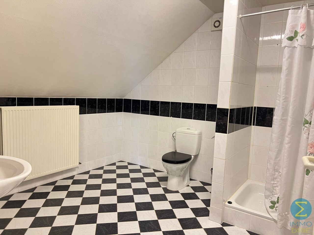 Op de verdieping is er een ruim bordes en een hele grote slaapkamer met dakvlakraam en opbergruimte, deur naar zolder met Junkers CV gas-installatie, afzonderlijke dressing, tweede badkamer met toilet, lavabo en douche.