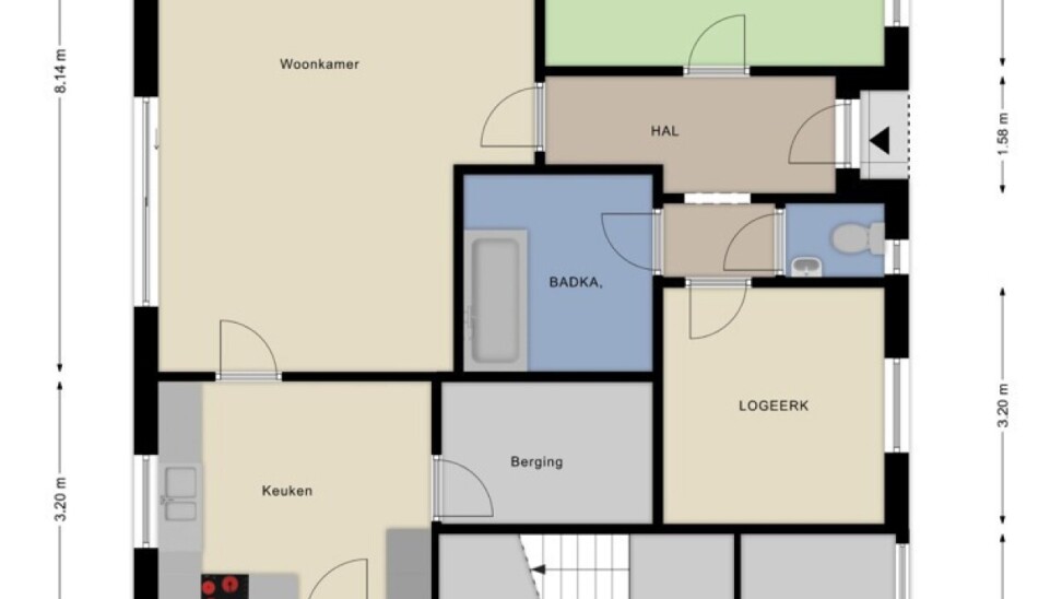 We betreden de woning via de inkomhal met afzonderlijk gastentoilet. Wanneer we verder lopen komen we in de ruime woonkamer met haard en mooi uitzicht op de tuin. Naast de woonkamer bevindt zich de keuken met aansluitende berging. Verder is er nog een afzonderlijke was- en strijkkamer, een extra berging met trap naar de verdieping. Er zijn op de begane grond nog 2 slaapkamers met naastliggende badkamer, zodat het voor zowel gezinnen als ouderen ideaal is.