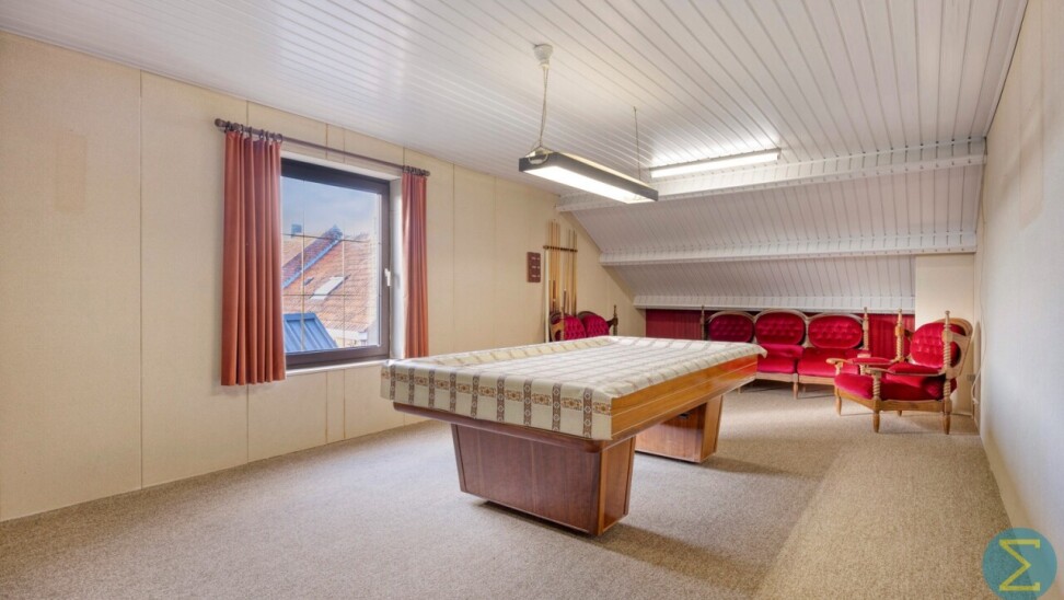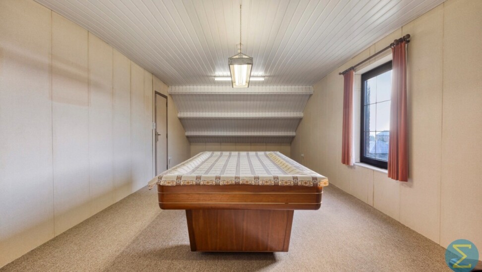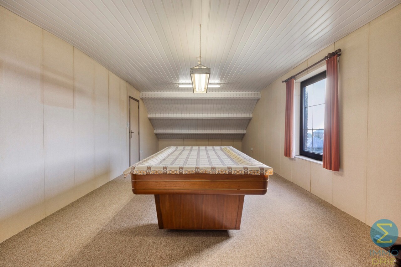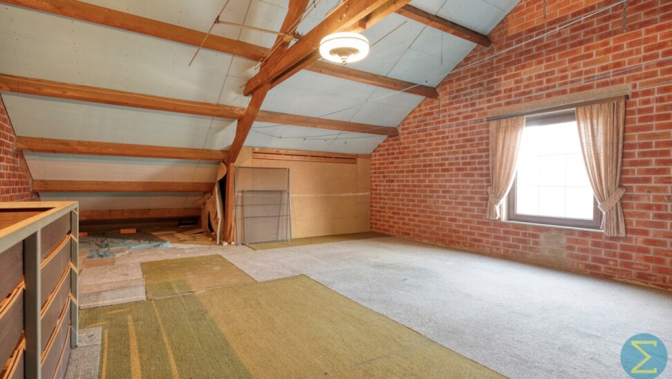 De woning beschikt over een grote inpandige garage met automatische sectionaalpoort en aansluiting voor wasmachine en droogkast. Daarnaast is er een uitgestrekte zolder, momenteel ingedeeld in twee afzonderlijke ruimtes, die tal van mogelijkheden biedt zoals extra slaapkamers, sanitair, hobbyruimte of bureau.
