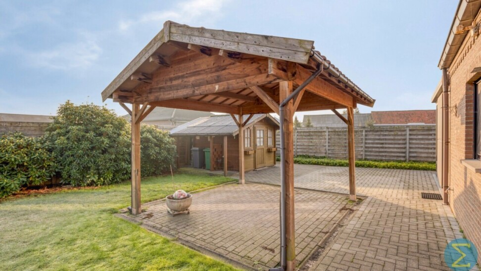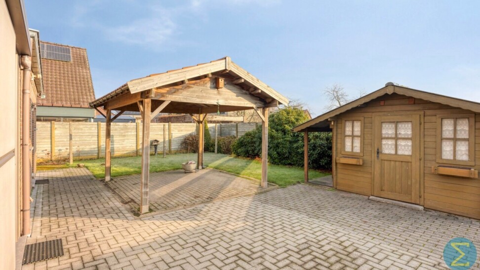 Buiten geniet u van een mooie, volledig afgesloten tuin met tuinberging en een overdekt terras, ideaal om in alle rust te ontspannen.