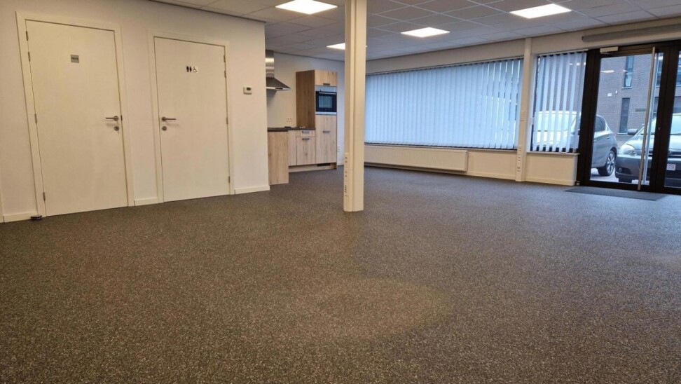 Prachtige handelsruimte met uitgebouwde kitchenette, 2 toiletten en 3 privatieve parkeerplaatsen.