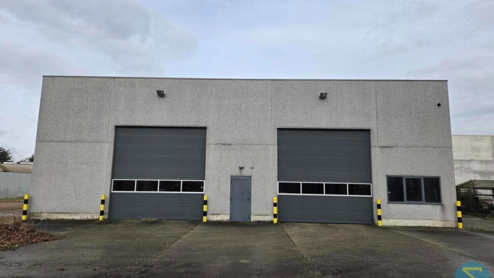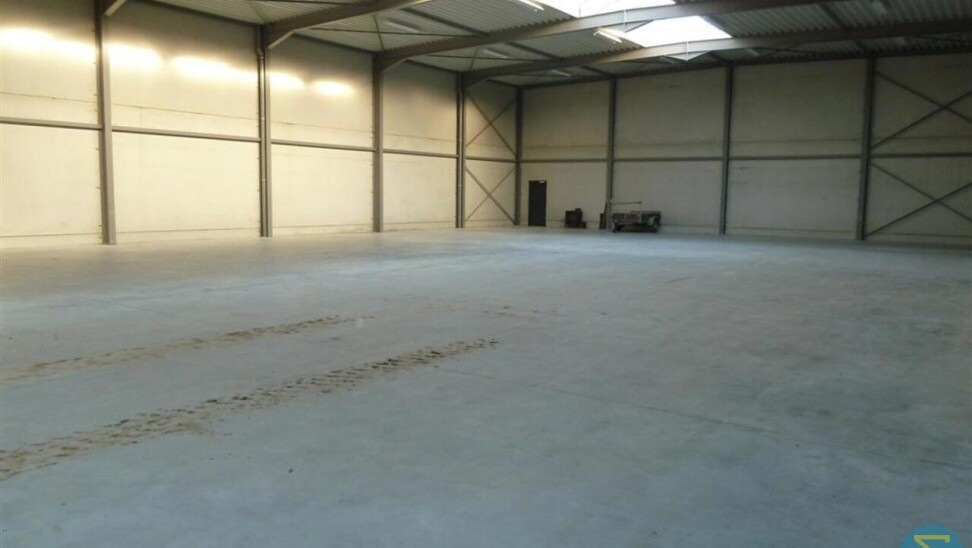 Industriehal met een oppervlakte van 600 m² (20 m op 30 m) op een perceel van maar liefst 3959 m² met 2 hoge inrijpoorten en toilet en handwasbak aanwezig op het industrieterrein Hoge Mauw te Arendonk.