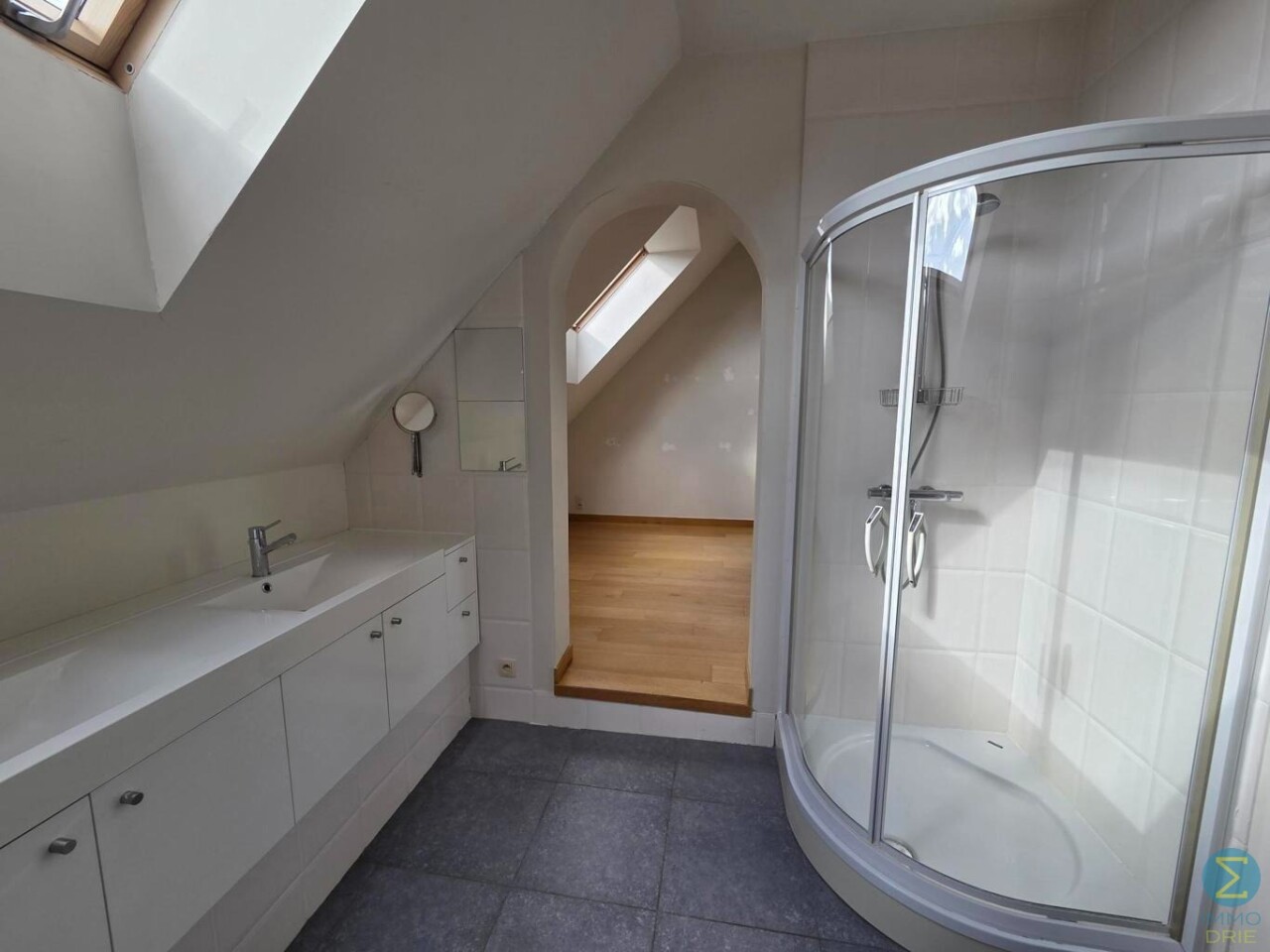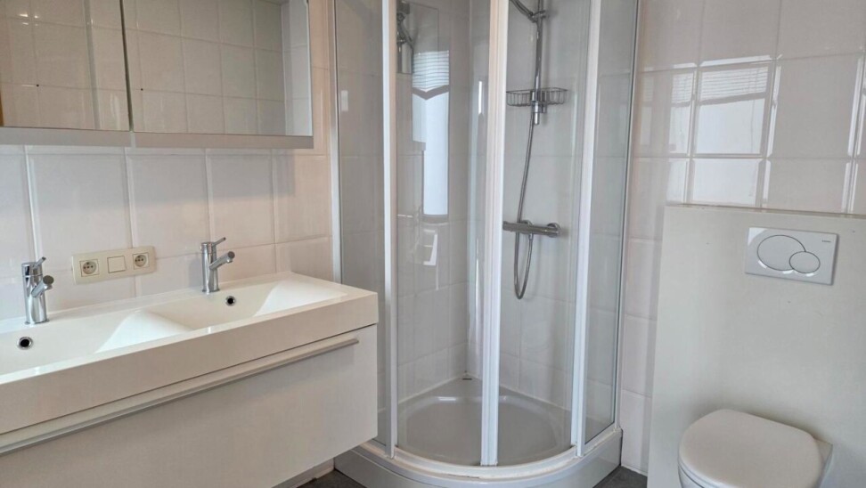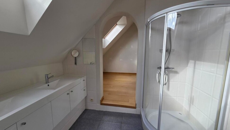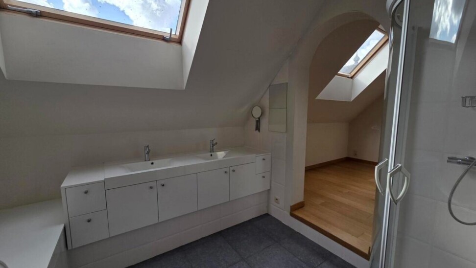 De masterbedroom beschikt over een luxueuze en-suite badkamer met douche, toilet en een badkamermeubel met dubbele wastafel. Aansluitend aan deze slaapkamer heeft u bovendien toegang tot een noordgericht terras – ideaal om in alle rust te genieten van een ochtendkoffie met zicht over de daken van de stad.
